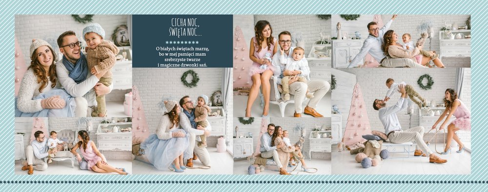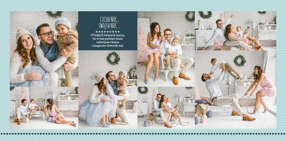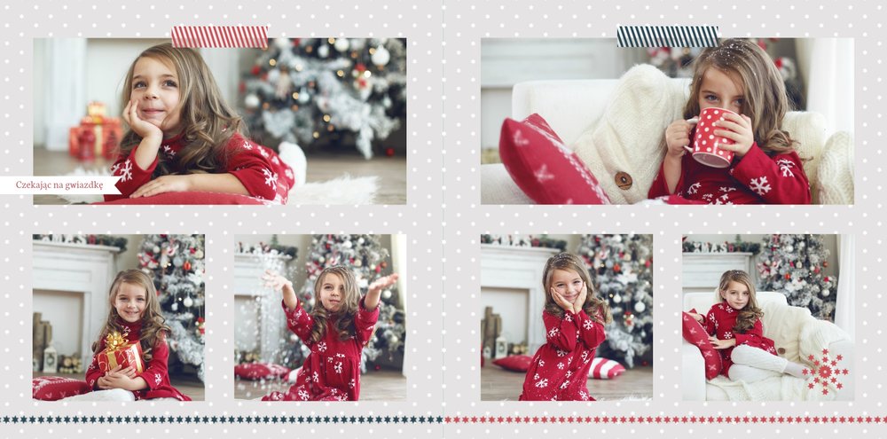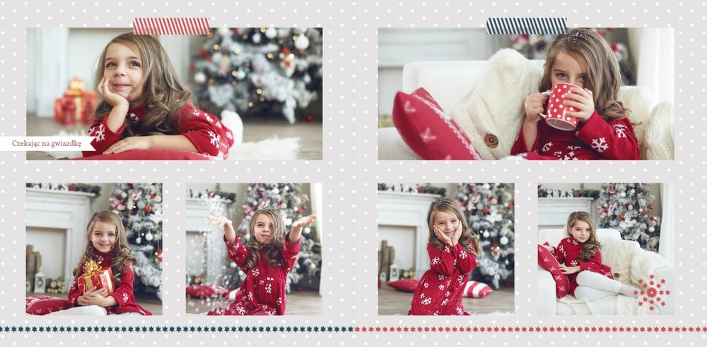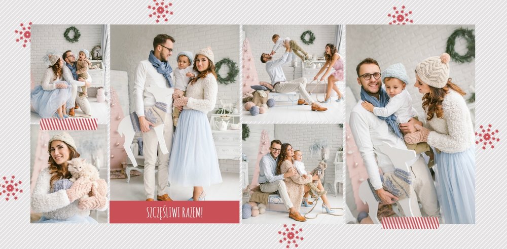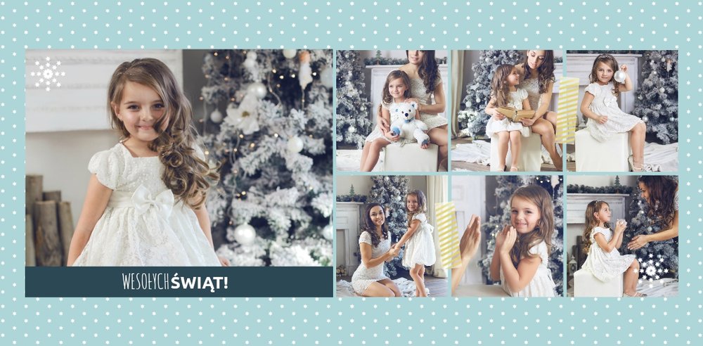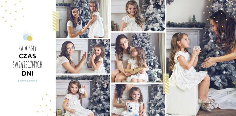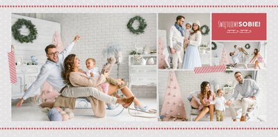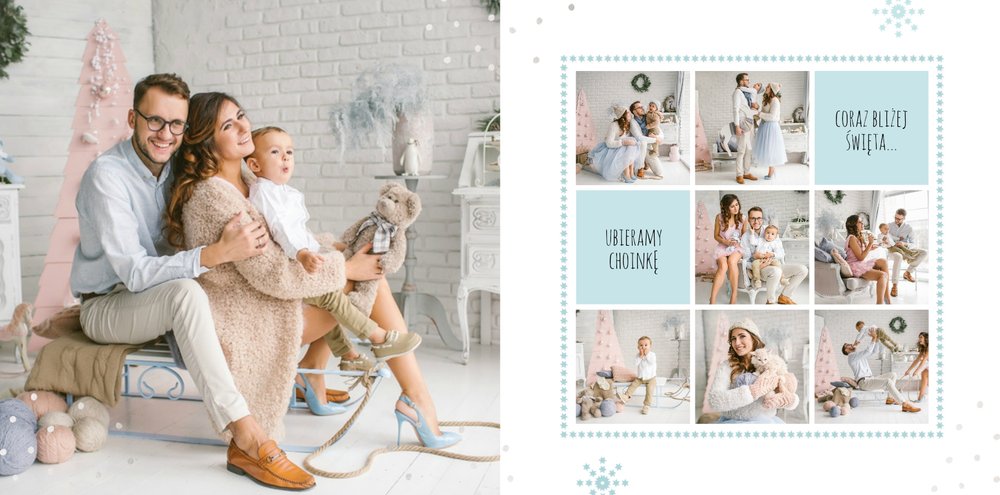 Fotoksiążka z szablonem Święta na 102 stanie się idealnym prezentem dla bliskich. Stonowane tła z kolorowymi akcentami, bożonarodzeniowa grafika i świąteczne teksty, które można swobodnie modyfikować, świetnie oddadzą świąteczny klimat. Podaruj ukochanym osobom piękne wspomnienia w postaci fotoksiążek.