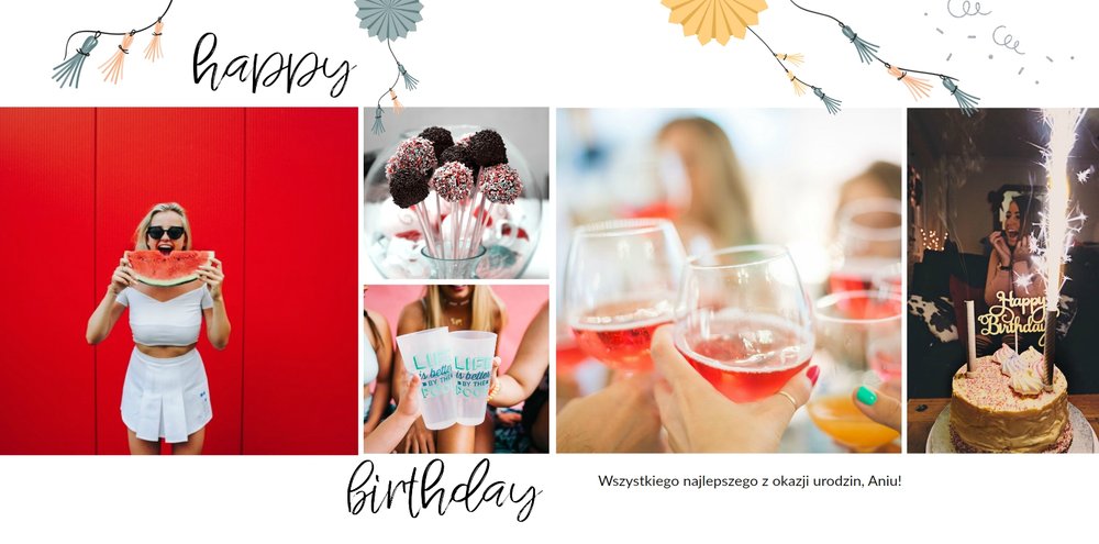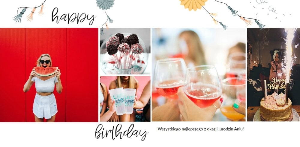 Z szablonem Prezent urodzinowy, zaprojektujesz piękną pamiątkę urodzinową dla najbliższej Ci osoby. Oryginalna grafika, mnóstwo miejsc na urodzinowe życzenia sprawią, że fotoksiążka z tym szablonem będzie idealnym źródłem wspomnień przez wiele, wiele lat. Zbierz najlepsze zdjęcia i zaprojektuj piękny Prezent urodzinowy!
