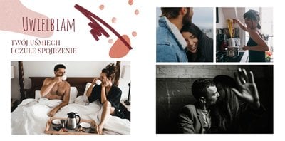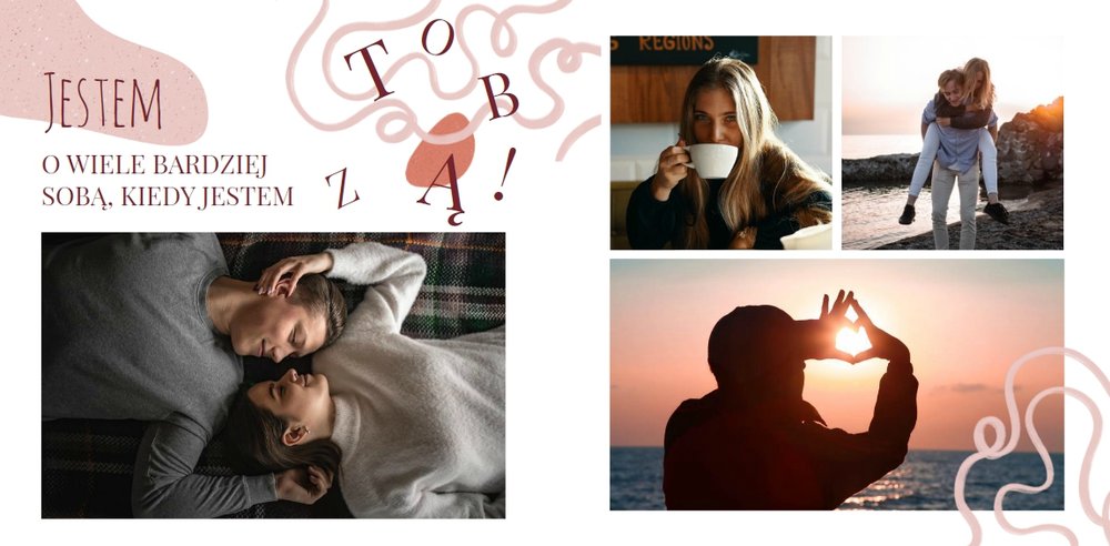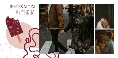 Szablon po brzegi wypełniony jest uroczymi tekstami i zakręconymi grafikami w ciepłej kolorystyce. To wszystko jasno wskazuje, że fotoksiążka dotyczy prawdziwych uczuć. Fotoksiążka z szablonem "Prosto z serca" to super pomysł na prezent w Dniu Chłopaka, z okazji Walentynek, urodzin i wielu innych! Zaskakuje, wywołuje uśmiech i wzrusza - czy aby nie jest to reakcja, której oczekujesz?