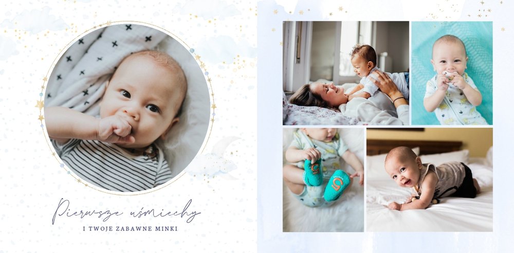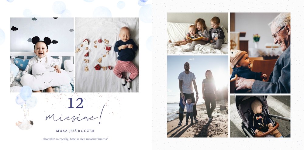 Podtrzymaj ulotne wspomnienia z pierwszego roku Twojej pociechy i wybierz fotoksiążkę z szablonem "Roczek synka". W tym intensywnym okresie każda zmiana jest cenna, dlatego śmiało utrwal zarówno te ważne, jak i najzwyklejsze momenty.