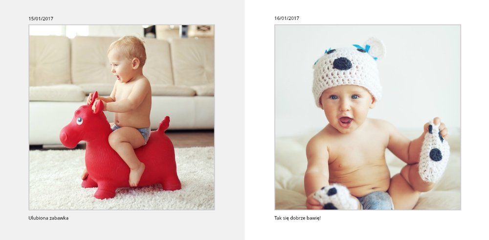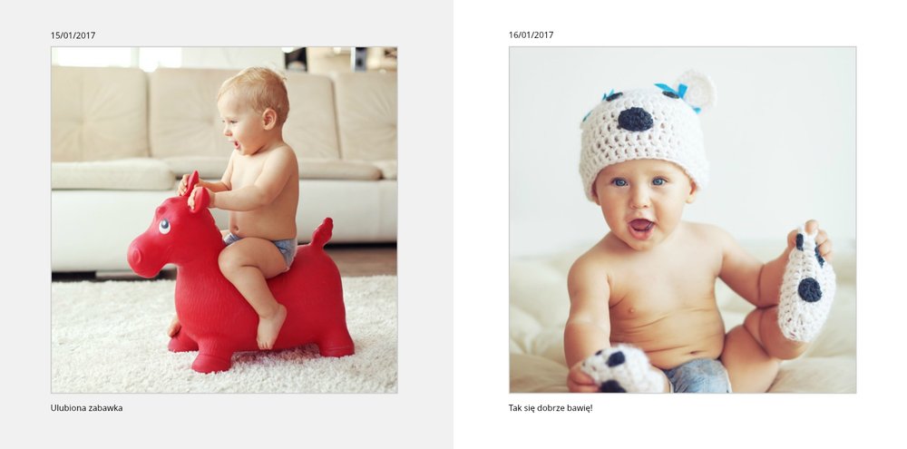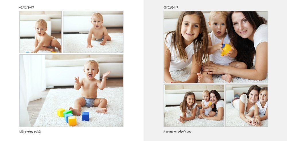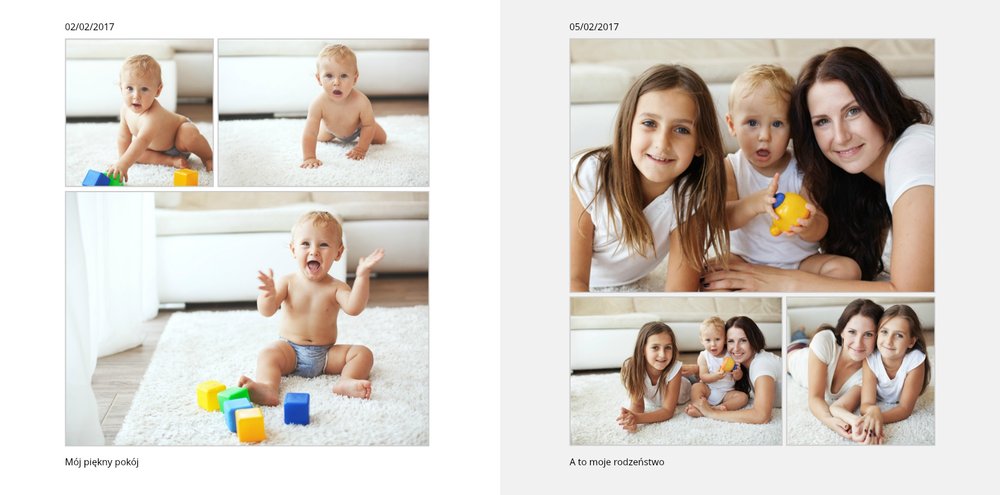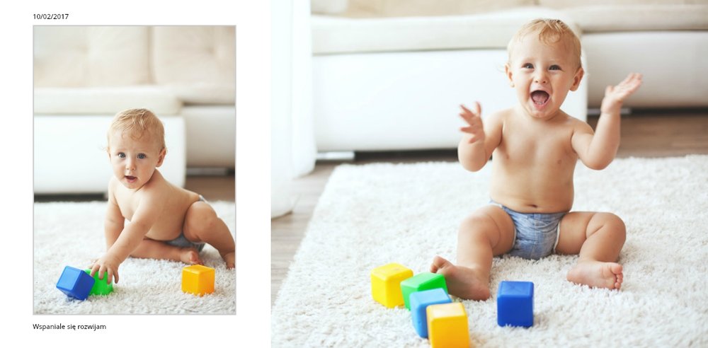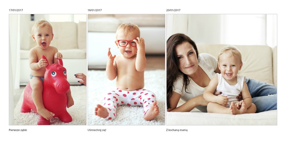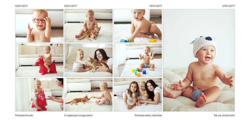 Roczek, to bardzo prosty szablon pozwalający zaprojektować fotoksiążkę, która będzie wspominać wczesne dzieciństwo Twojej córki lub Twojego syna. Udokumentuj ten wyjątkowy czas beztroskimi pięknymi zdjęciami i własnymi notatkami. Klasyczne układy, stonowane kolory i forma dziennika sprawią, że książka będzie przypominać o radosnych chwilach przez długie lata.