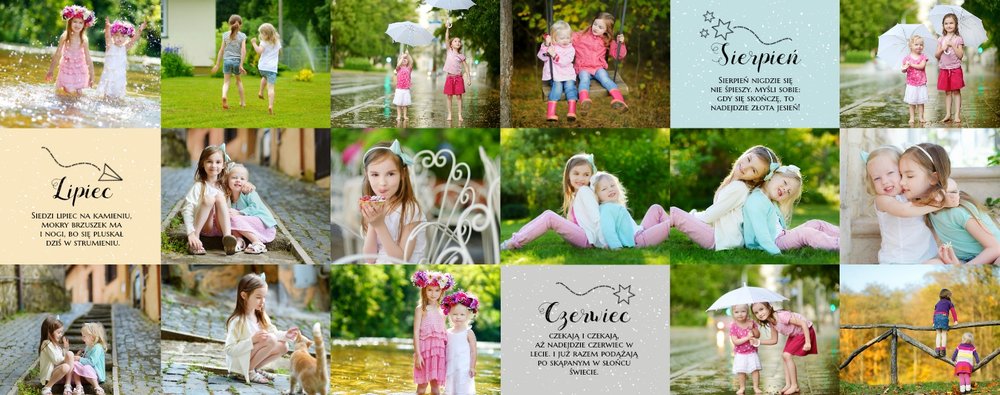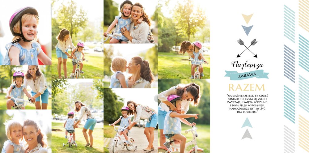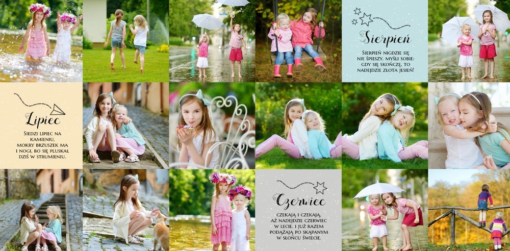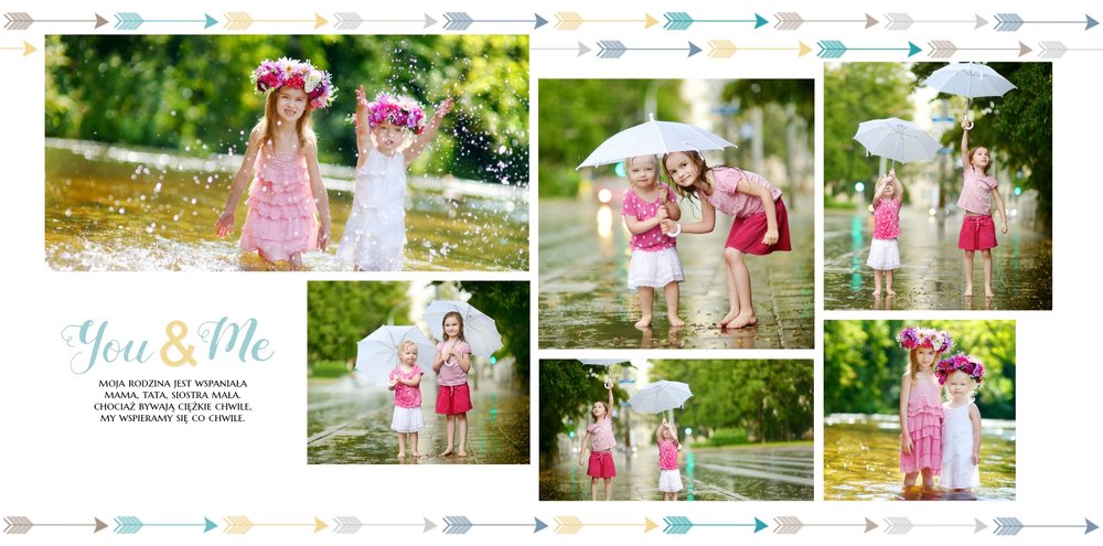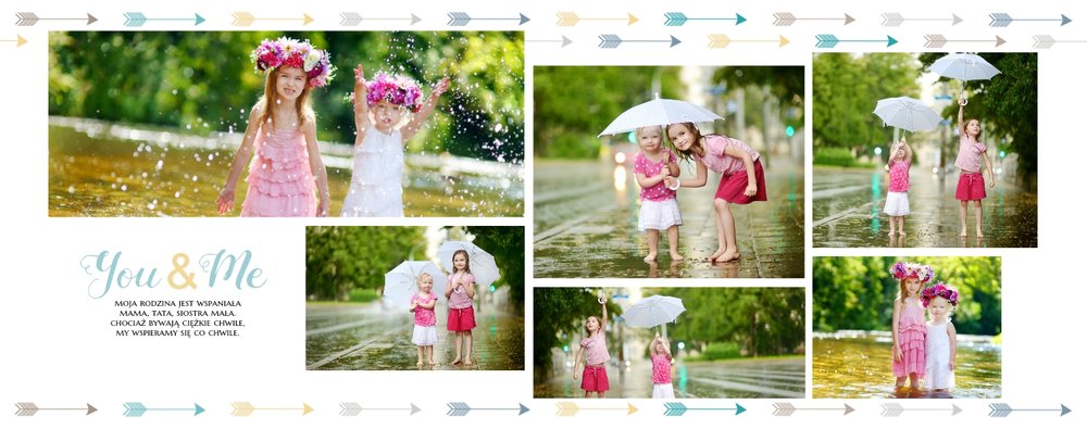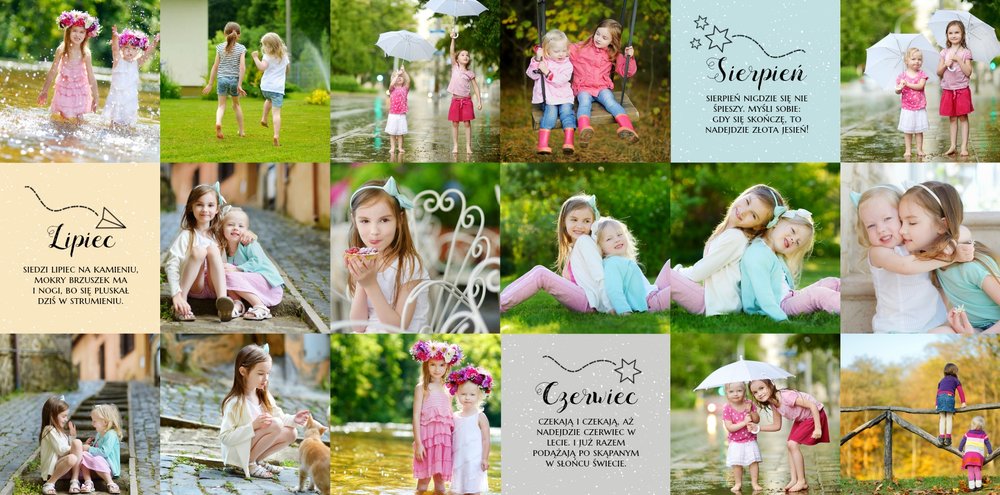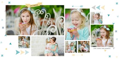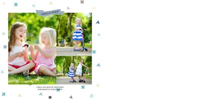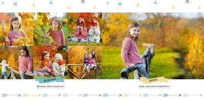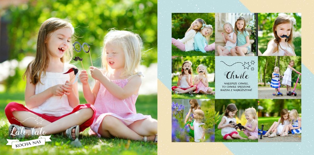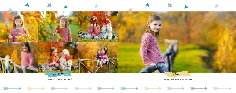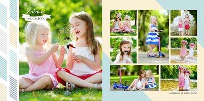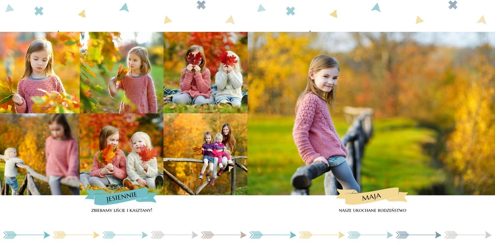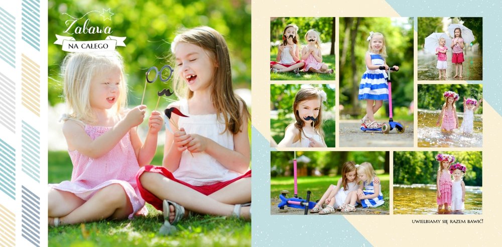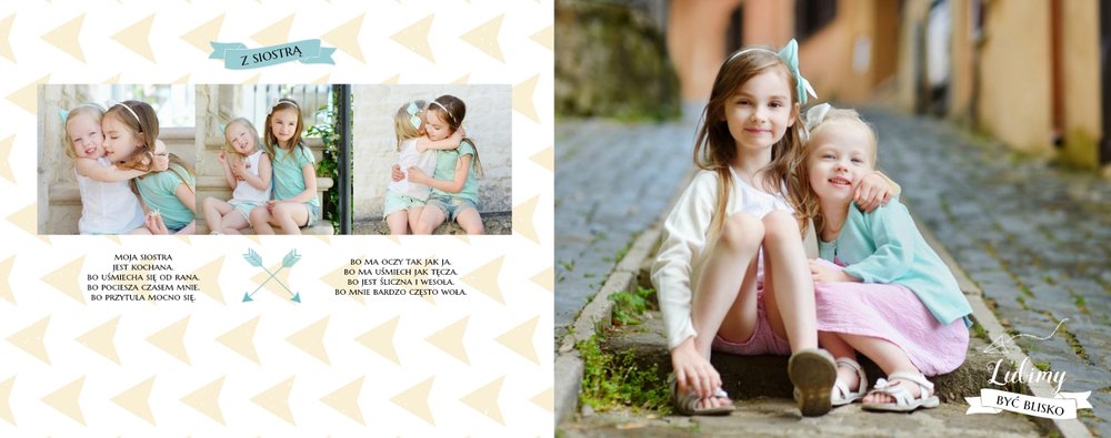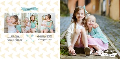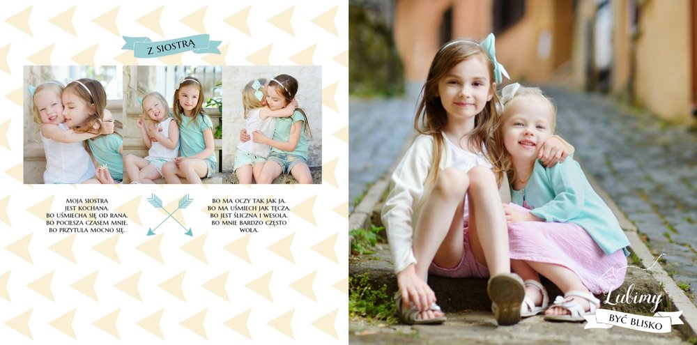 Z szablonem Rodzeństwo zaprojektujesz rodzinną fotoksiążkę. Zbierz najpiękniejsze zdjęcia Twoich dzieci i skomponuj z nich książkę, która zostanie z Wami na długie lata. Dzięki oryginalnym układom zdjęć, wielu miejscom na rodzinne dialogi i ulubione wierszyki oraz radosnym kolorom, fotoksiążka nabierze wyjątkowego charakteru.