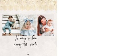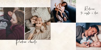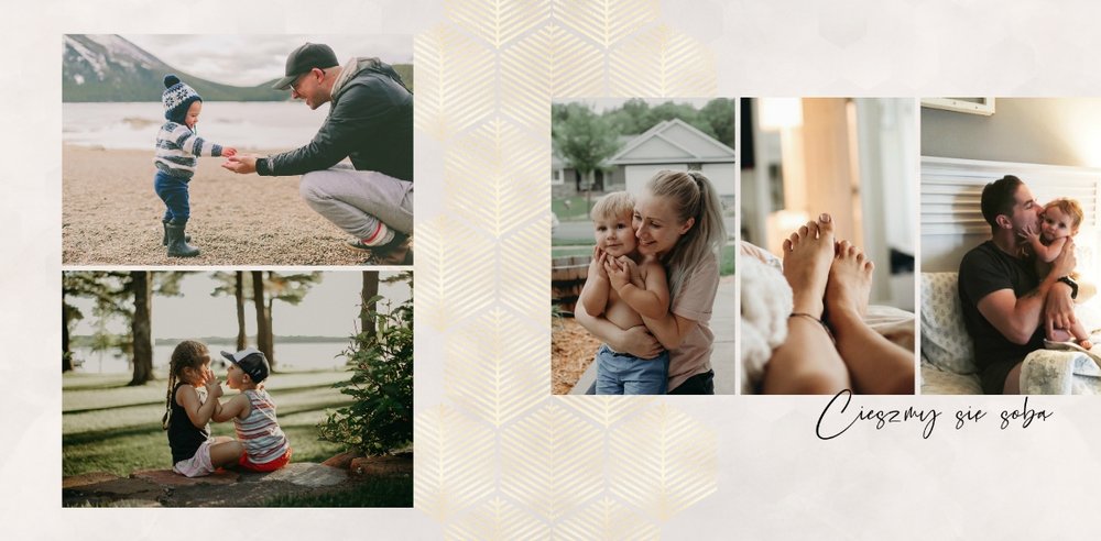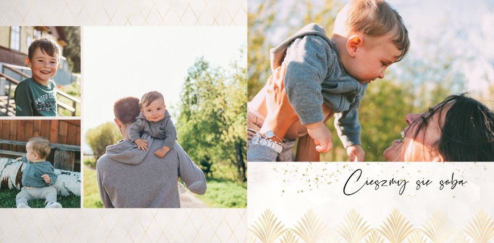 Każda chwila w otoczeniu rodzinny to bezcenny moment. Z szablonem "Rodzinne chwile" zachowasz najważniejsze chwile w niezwykłej fotoksiążce. Wnętrze zapewni Ci mnóstwo miejsca na rodzinne ujęcia z wszystkich uroczystości. Całość szablonu jest minimalistyczna, wzbogacona o złote elementy graficzne oraz pełne miłości napisy. Uzupełnij zdjęcia o bezcenne i pełne miłości rodzinne zdjęcia.