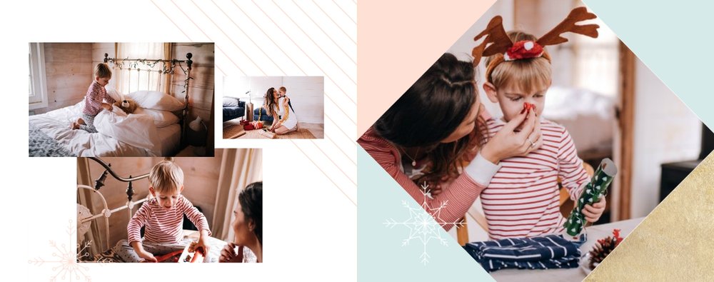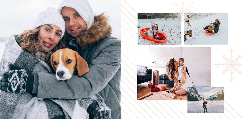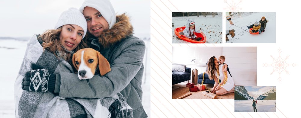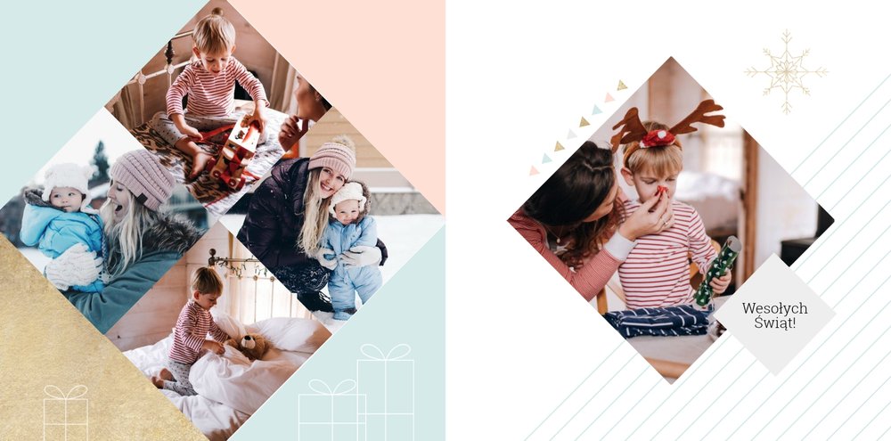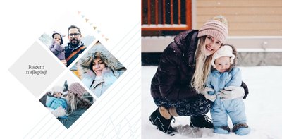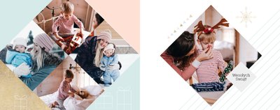 Rodzinne Święta to szablon, dzięki któremu fotoksiążka stanie się wyjątkowym prezentem świątecznym dla Twojej bliskiej osoby. Minimalistyczna, zimowa grafika, oryginalne układy zdjęć i piękne, pastelowe kolory sprawią, że książka będzie oryginalną pamiątką nie tylko od święta.