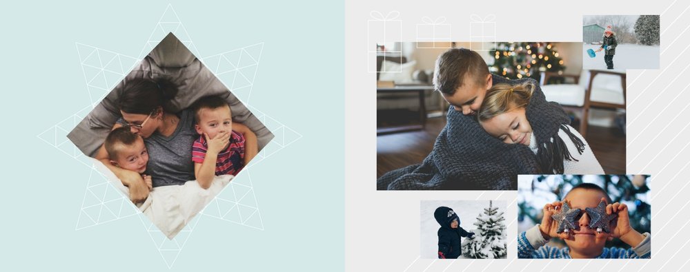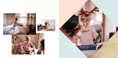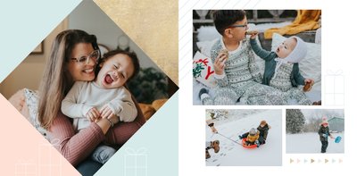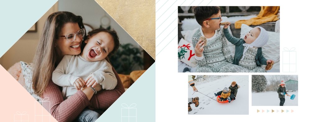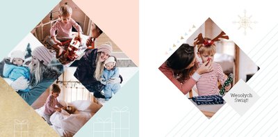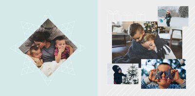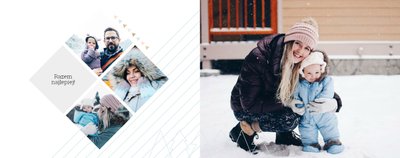 Rodzinne Święta to szablon, dzięki któremu fotoksiążka stanie się wyjątkowym prezentem świątecznym dla Twojej bliskiej osoby. Minimalistyczna, zimowa grafika, oryginalne układy zdjęć i piękne, pastelowe kolory sprawią, że książka będzie oryginalną pamiątką nie tylko od święta.