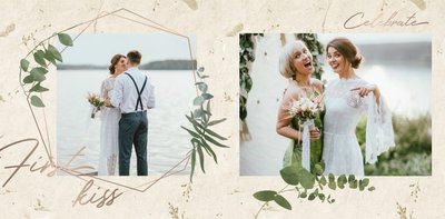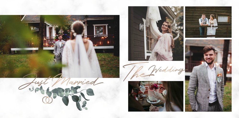 Rustykalny szyk to propozycja dla osób ceniących tradycję, naturę i minimalizm. Wypełnij fotoksiążkę po brzegi zdjęciami ze ślubu i nadaj mi drugie życie! Szablon Rustykalny szyk to minimalistyczna forma upiększenia Twoich ślubnych fotografii, które dodatkowo opatrzone będą złotymi napisami graficznymi. Całość w połączeniu z zielenią prezentuje się zjawiskowo. Nie ma wątpliwości, że tak przygotowana fotoksiążka skradnie Wasze serca.
