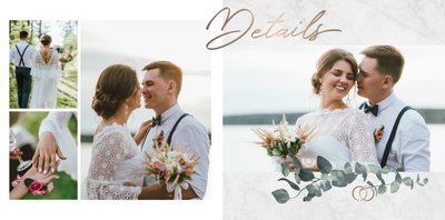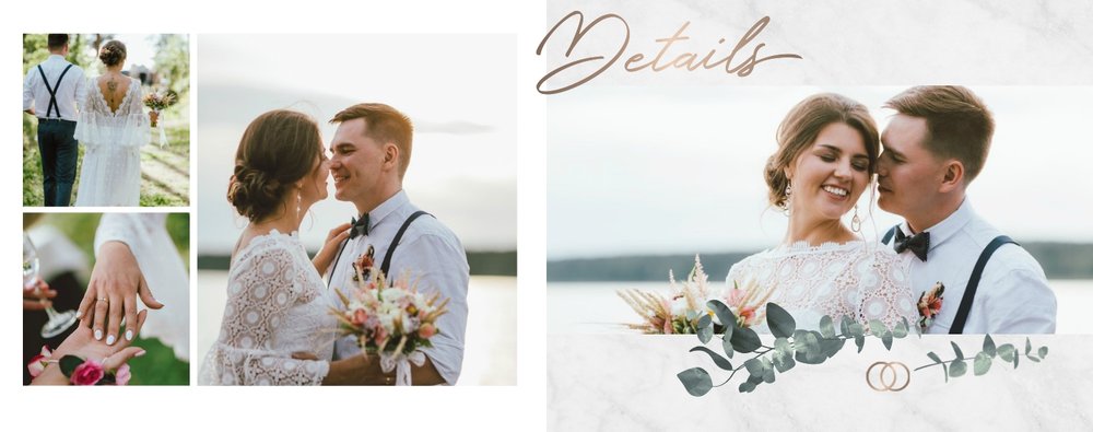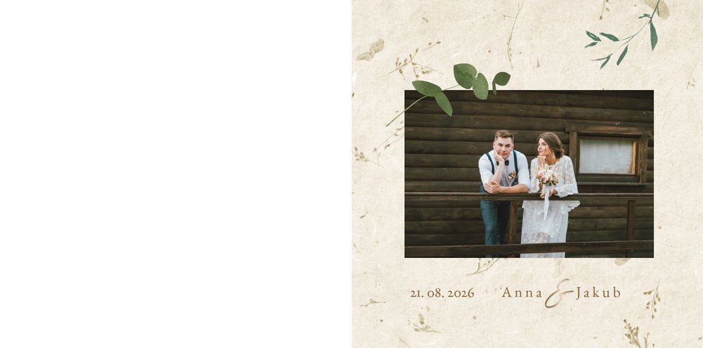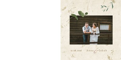 Rustykalny szyk to propozycja dla osób ceniących tradycję, naturę i minimalizm. Wypełnij fotoksiążkę po brzegi zdjęciami ze ślubu i nadaj mi drugie życie! Szablon Rustykalny szyk to minimalistyczna forma upiększenia Twoich ślubnych fotografii, które dodatkowo opatrzone będą złotymi napisami graficznymi. Całość w połączeniu z zielenią prezentuje się zjawiskowo. Nie ma wątpliwości, że tak przygotowana fotoksiążka skradnie Wasze serca.