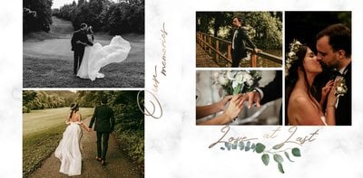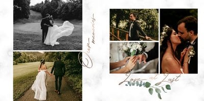 Rustykalny szyk to propozycja dla osób ceniących tradycję, naturę i minimalizm. Wypełnij fotoksiążkę po brzegi zdjęciami ze ślubu i nadaj mi drugie życie! Szablon Rustykalny szyk to minimalistyczna forma upiększenia Twoich ślubnych fotografii, które dodatkowo opatrzone będą złotymi napisami graficznymi. Całość w połączeniu z zielenią prezentuje się zjawiskowo. Nie ma wątpliwości, że tak przygotowana fotoksiążka skradnie Wasze serca.