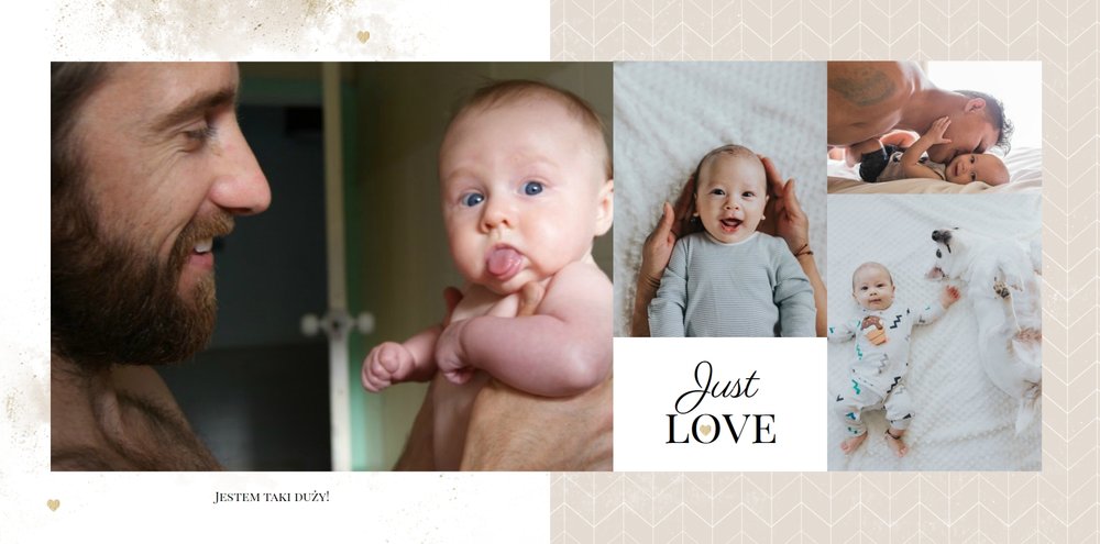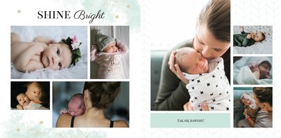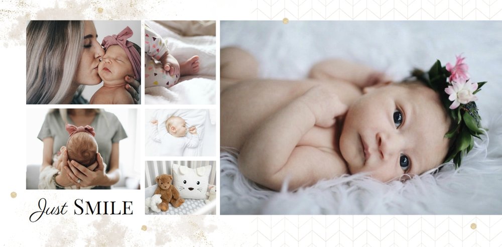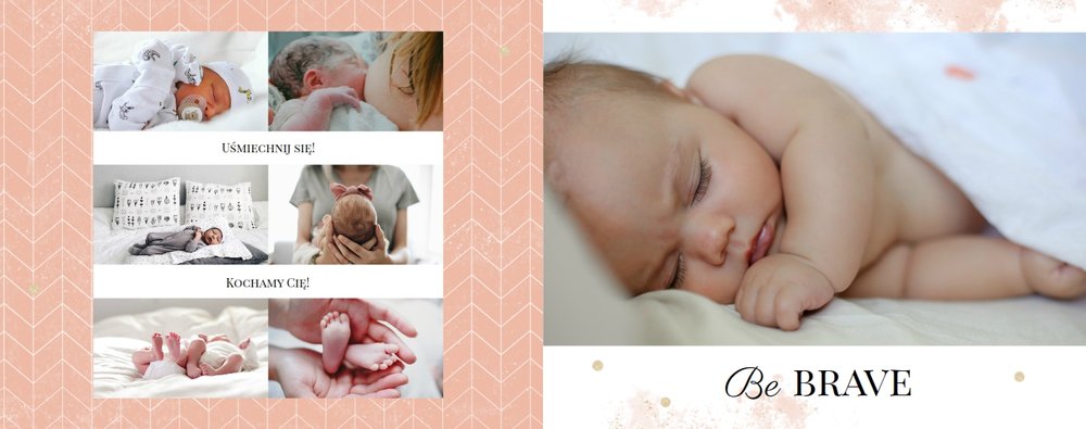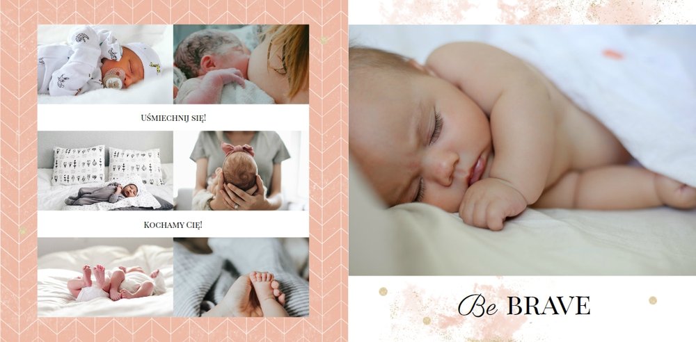 Szablon Sesja noworodkowa to szablon, który sprawi radość wszystkim młodym mamom i nie tylko. Zbierz najpiękniejsze wspomnienia z najważniejszych momentów życia Twojego dziecka i zaprojektuj wyjątkową fotoksiążkę. Pastelowe kolory, oryginalne układy zdjęć i mnóstwo miejsca na mamine notatki pozwolą cieszyć się wspomnieniami utrwalonymi na zdjęciach przez długi czas.