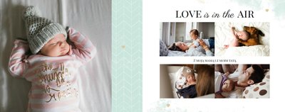 Szablon Sesja noworodkowa to szablon, który sprawi radość wszystkim młodym mamom i nie tylko. Zbierz najpiękniejsze wspomnienia z najważniejszych momentów życia Twojego dziecka i zaprojektuj wyjątkową fotoksiążkę. Pastelowe kolory, oryginalne układy zdjęć i mnóstwo miejsca na mamine notatki pozwolą cieszyć się wspomnieniami utrwalonymi na zdjęciach przez długi czas.