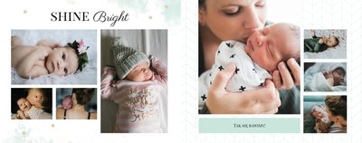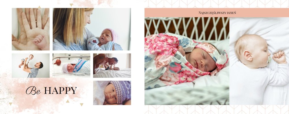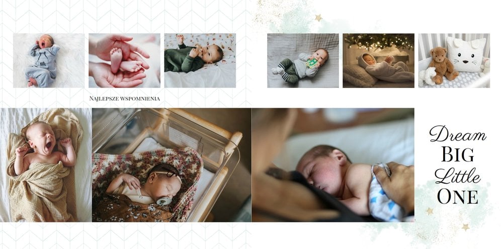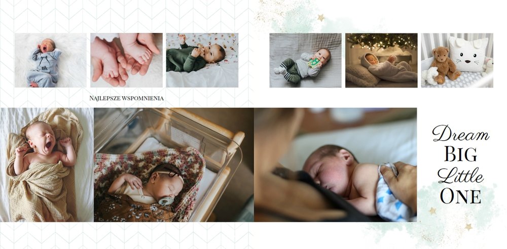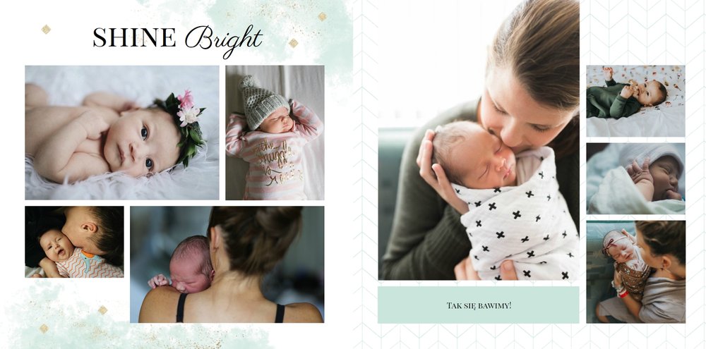 Szablon Sesja noworodkowa to szablon, który sprawi radość wszystkim młodym mamom i nie tylko. Zbierz najpiękniejsze wspomnienia z najważniejszych momentów życia Twojego dziecka i zaprojektuj wyjątkową fotoksiążkę. Pastelowe kolory, oryginalne układy zdjęć i mnóstwo miejsca na mamine notatki pozwolą cieszyć się wspomnieniami utrwalonymi na zdjęciach przez długi czas.