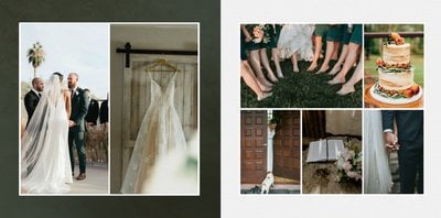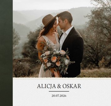 Fotoksiążka sprawdzi się zarówno dla fotografii ślubnych w klimacie mniej jak i bardziej tradycyjnych wesel. To minimalistyczna propozycja dla wszystkich młodych par kochających połączenie delikatnej elegancji i natury. Neutralne kolory ziemi - szałwia, zieleń, beż i brąz - podkreślą zdjęcia robione zarówno w plenerze, jak i na pięknie zdobionej sali. Elegancji dodadzą im delikatne, białe ramki.