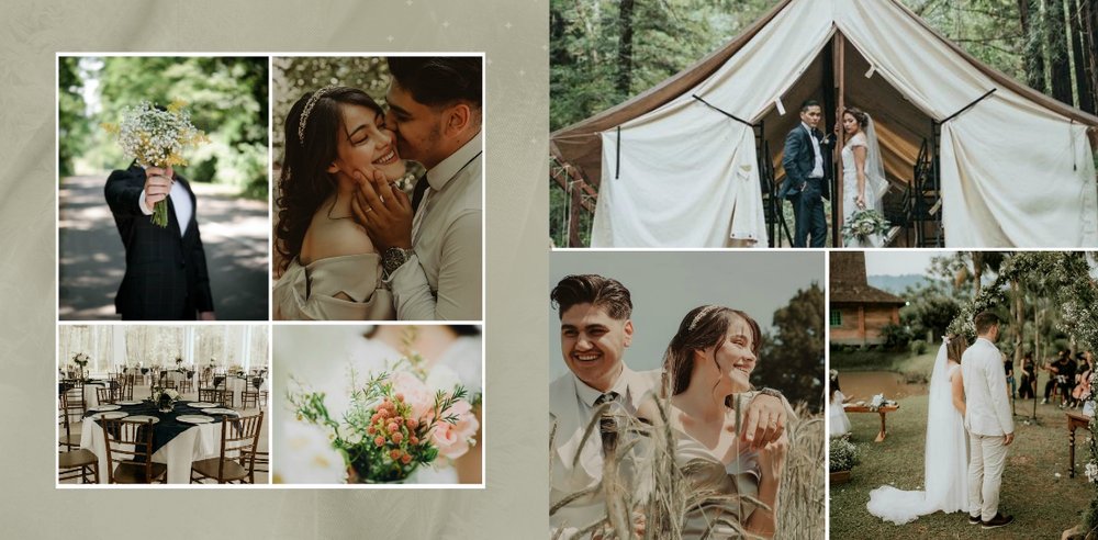 Fotoksiążka sprawdzi się zarówno dla fotografii ślubnych w klimacie mniej jak i bardziej tradycyjnych wesel. To minimalistyczna propozycja dla wszystkich młodych par kochających połączenie delikatnej elegancji i natury. Neutralne kolory ziemi - szałwia, zieleń, beż i brąz - podkreślą zdjęcia robione zarówno w plenerze, jak i na pięknie zdobionej sali. Elegancji dodadzą im delikatne, białe ramki.