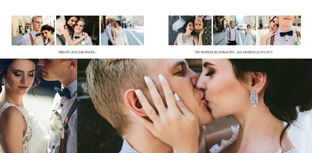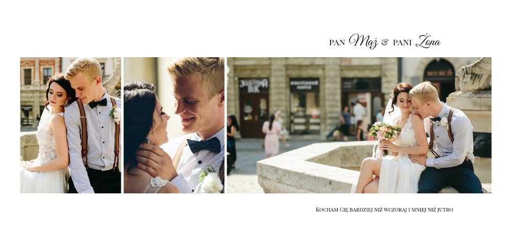 Ślub to szablon z którym zaprojektujesz wyjątkową fotoksiążkę lub ekskluzywny fotoalbum ze zdjęciami z Waszego ślubu i wesela. Tak wyjątkowy dzień zasługuje na najlepszą oprawę! Minimalistyczny szablon z klasycznymi układami zdjęć i miłosnymi cytatami pozwoli zaprojektować Ci książkę, która będzie przechowywać Wasze wspomnienia przez wiele, wiele lat.