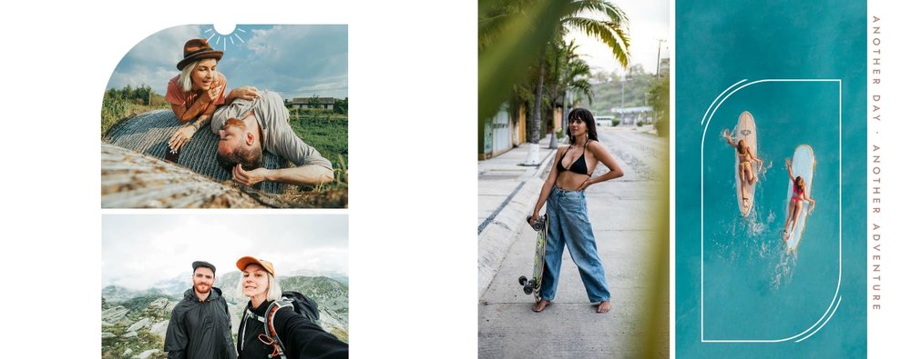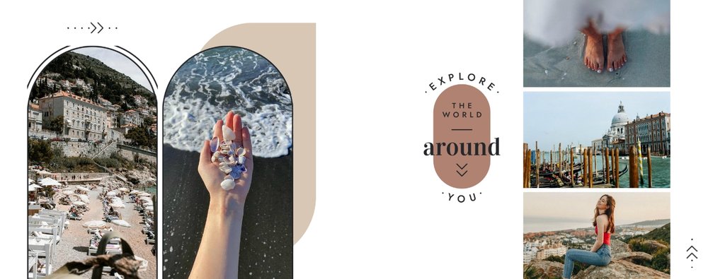 Stylistyka szablonu wzorowana jest na najnowszych trendach, przeniesionych wprost z mediów społecznościowych. Delikatna, piaskowa kolorystyka podkreśli wszystkie Twoje barwne ujęcia, a geometryczne kształty i symbole nadadzą im jeszcze więcej dynamiki.