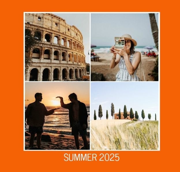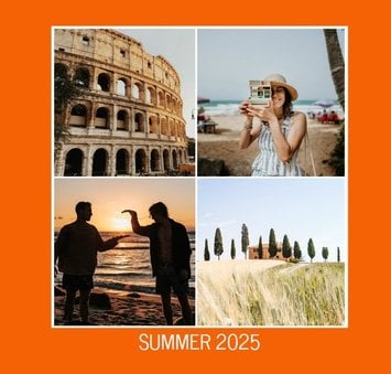 Fotoksiążka z szablonem "Summer" to idealna propozycja dla każdego, kogo pamięć telefonu lub dysk komputera "pęka w szwach" z powodu niewywołanych wspomnień z wakacji.