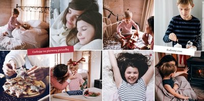 Fotoksiążka z szablonem Świąteczny czas to bardzo dobry pomysł na bożonarodzeniowy prezent dla bliskich. Wspólne zdjęcia połączone z wyjątkową grafiką szablonu sprawią, że świąteczny podarunek będzie wyjątkowy. Głęboka czerwień, oryginalne układy zdjęć w postaci choinki i prezentów oraz miejsce na życzenia świąteczne dodatkowo przyozdobią rodzinne fotografie. Z tym szablonem zaprojektujesz piękny prezent!