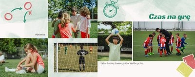Szablon został zaprojektowany w sportowym duchu. Motyw kolorystyczny opiera się na zieleni boiska, bieli oraz limonce. Tak dobrane kolory podkreślą każde zdjęcie pełne akcji, a elementy nawiązujące do piłkarskich emocji oddadzą ich charakter. Całości dopełnią teksty - zarówno te uniwersalne, oraz takie, które można dowolnie personalizować.