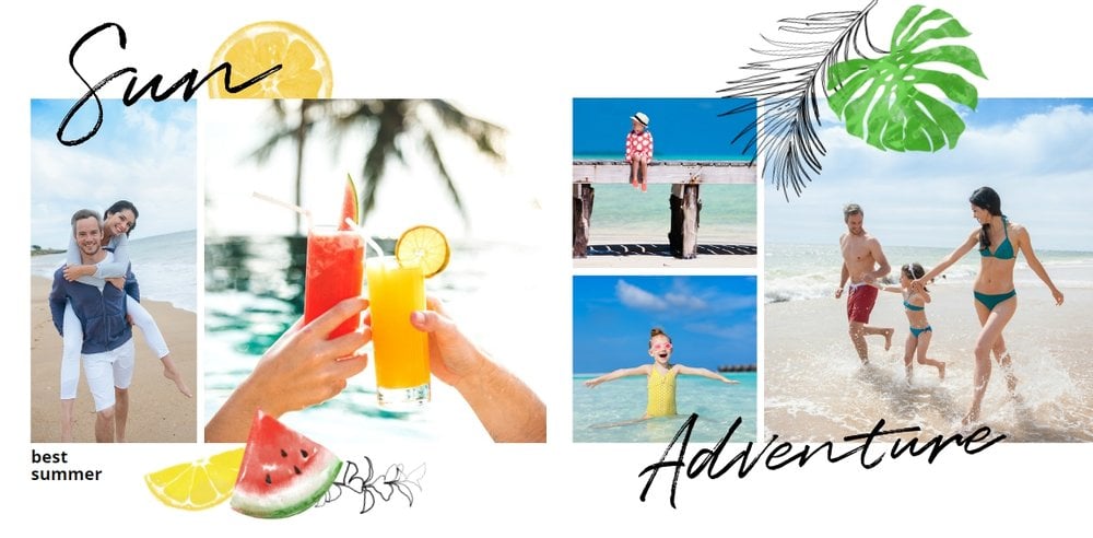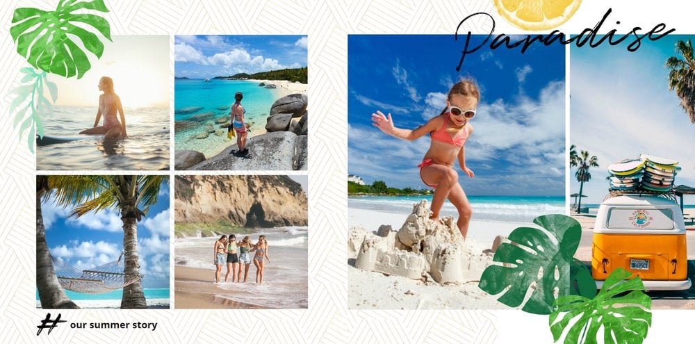 Morza szum, ptaków śpiew... Słowa tej piosenki niech zainspirują Cię do stworzenie fotoksiążki, która przepełniona będzie zdjęciami z Twoich wakacji. Zapełnij strony minimalistyczego szablonu ulubionymi kadrami i ciesz się letnimi wspomnieniami na dłużej. Wewnątrz szablonu Szum fal znajdziesz białe strony oraz wakacyjne dodatki w postaci palm, kwiatów oraz graficznych napisów - wszystko to idealnie dopełni całość Twojej wakacyjnej przygody.