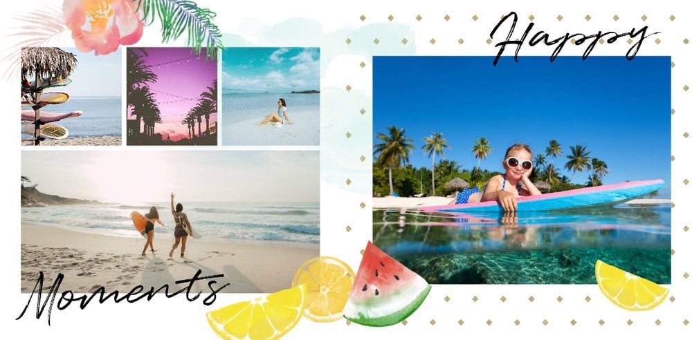Morza szum, ptaków śpiew... Słowa tej piosenki niech zainspirują Cię do stworzenie fotoksiążki, która przepełniona będzie zdjęciami z Twoich wakacji. Zapełnij strony minimalistyczego szablonu ulubionymi kadrami i ciesz się letnimi wspomnieniami na dłużej. Wewnątrz szablonu Szum fal znajdziesz białe strony oraz wakacyjne dodatki w postaci palm, kwiatów oraz graficznych napisów - wszystko to idealnie dopełni całość Twojej wakacyjnej przygody.