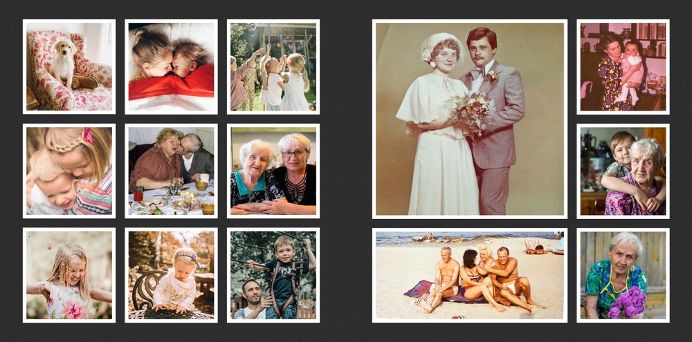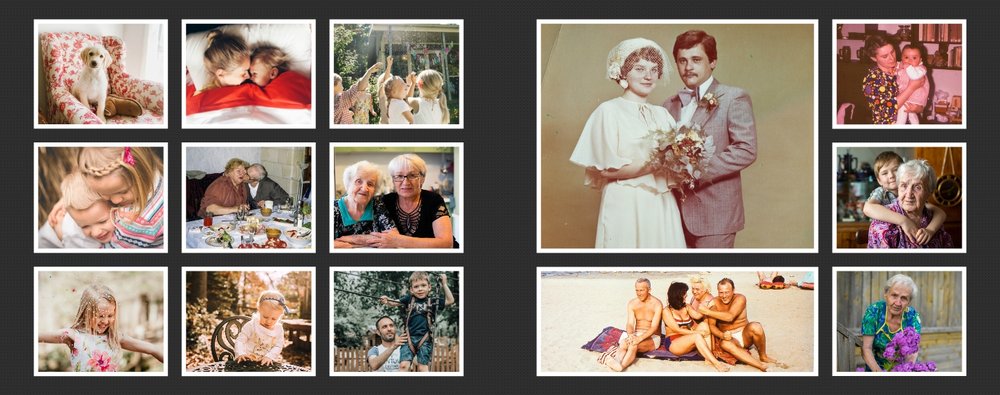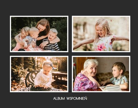 Albumy to skarbnica wspomnień, szczególnie tych rodzinnych. Fotoksiążka to świetna alternatywa, dlatego w szablonie Tradycyjny album na zdjęcia znajdziesz mnóstwo miejsca na fotografie, które dla Ciebie i Twojej rodziny są najważniejsze. Minimalistyczny szablon w ciemnym odcieniu oraz delikatne ramki na zdjęcia to idealne połączenie Twoich zdjęć w jedną, wyjątkową rodzinna historię.