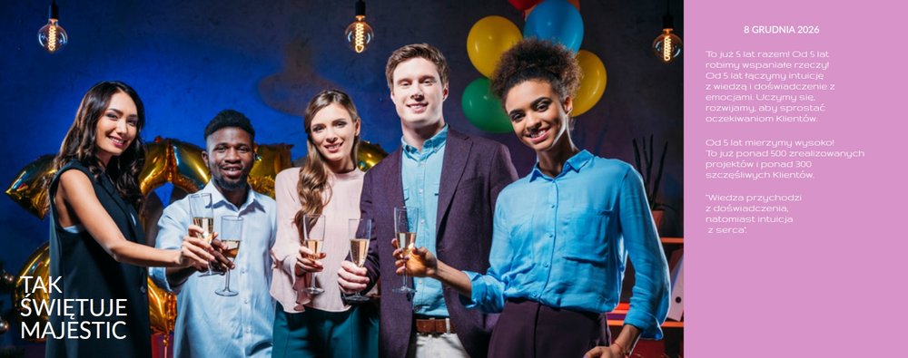 Urodziny firmy to szablon, z którym zaprojektujesz bardzo wyjątkową fotoksiążkę podsumowującą ostatnie lata działalności firmy. Taka książka ze zdjęciami stanie się piękną wizytówką, która dodatkowo nagrodzi i zmotywuje pracowników. Skorzystaj z szablonu biznesowego Urodziny firmy i zaprojektuj fotoksiążkę jako pamiątkę na wiele, wiele lat!