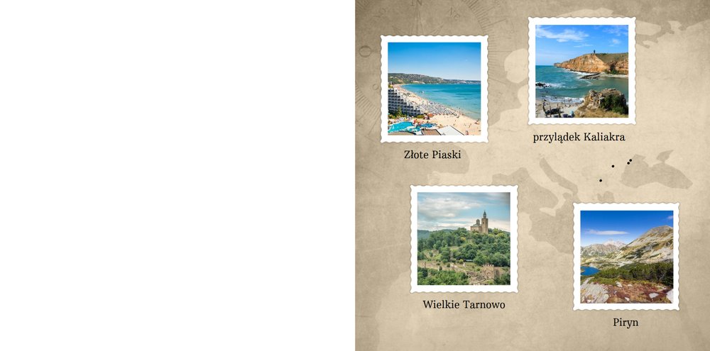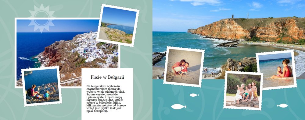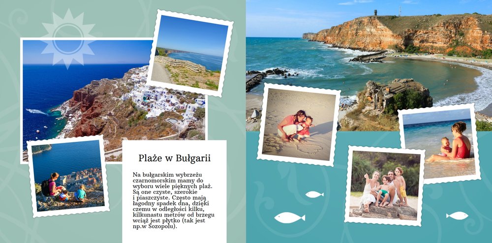 Bułgarskie wybrzeże czarnomorskie kusi piękną pogodą, malowniczymi plażami oraz krystalicznie czystym morzem. Poznamy tu bułgarską gościnność, znakomitą kuchnię i doskonałe wina. Można nie oszczędzać aparatu, by wrócić z masą pięknych zdjęć. Fotoksiążka wykonana z użyciem wakacyjnego szablonu "Bułgaria" będzie piękną pamiątką, do której z przyjemnością będziemy wracać.