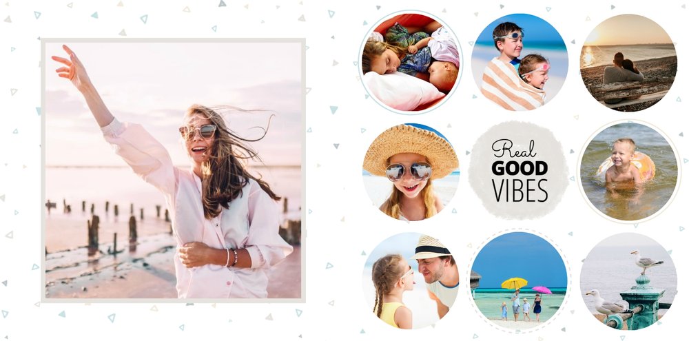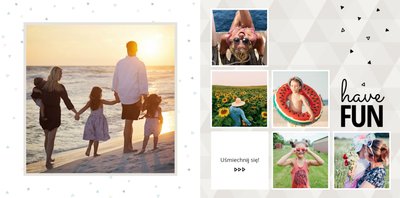 Oto propozycja dla wszystkich uwielbiających spędzać wakacje nad morzem. Fotoksiążka zaprojektowana z szablonem Wakacje nad morzem będzie przepiękną pamiątką każdego wyjazdu nad morze. Jasne tła i delikatne dodatki idealnie skomponują się z kolorowymi zdjęciami z egzotycznych wakacji.