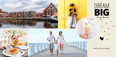 Oto propozycja dla wszystkich uwielbiających spędzać wakacje nad morzem. Fotoksiążka zaprojektowana z szablonem Wakacje nad morzem będzie przepiękną pamiątką każdego wyjazdu nad morze. Jasne tła i delikatne dodatki idealnie skomponują się z kolorowymi zdjęciami z egzotycznych wakacji.