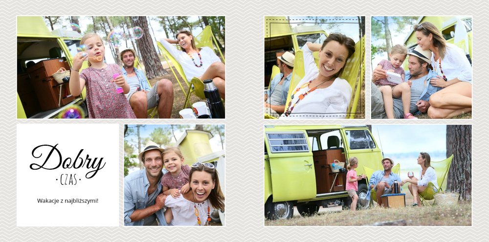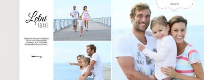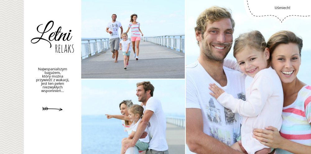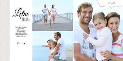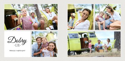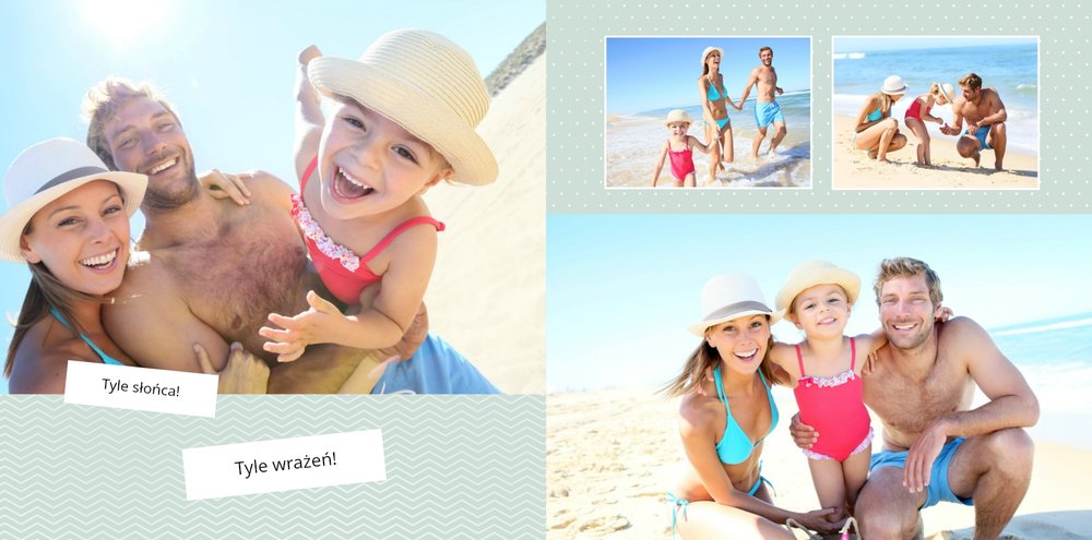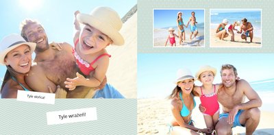 Z szablonem Wakacje w Polsce stworzysz wyjątkową fotoksiążkę pełną letnich wspomnień z wakacji nad morzem lub z weekendu w górach. To idealny szablon dla miłośników podróży po Polsce, po takich miejscach jak polskie góry, Morze Bałtyckie, Mazury. Popielate i beżowe tła świetnie komponują się z kolorowymi zdjęciami. Ciekawe czcionki, różnorodne układy zdjęć oraz miejsca na własne teksty, dodatkowo urozmaicą wakacyjną fotoksiążkę. Z tym szablonem zaprojektujesz wyjątkową książkę, która będzie piękną pamiątką na całe życie!