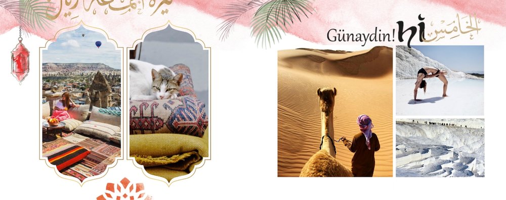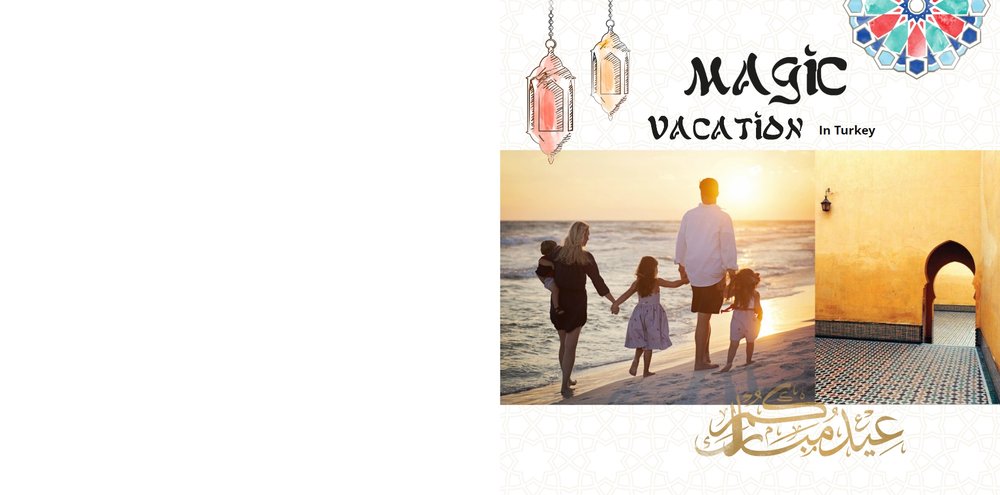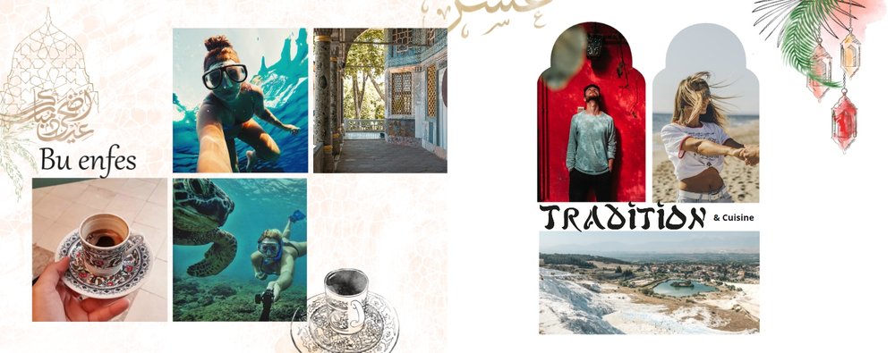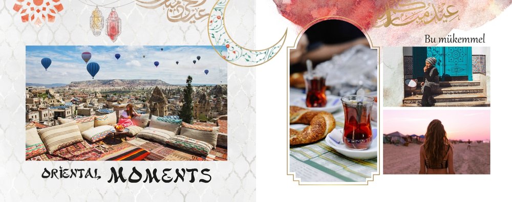 Białe strony wzbogacone są o charakterystyczne tureckie elementy kultury, ale i letnie grafiki. Fotoksiażka z tym szablonem podkreśli Twoje zdjęcia, a całości doda estetycznego wyglądu.
