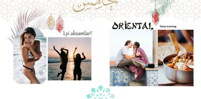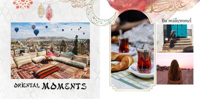 Białe strony wzbogacone są o charakterystyczne tureckie elementy kultury, ale i letnie grafiki. Fotoksiażka z tym szablonem podkreśli Twoje zdjęcia, a całości doda estetycznego wyglądu.