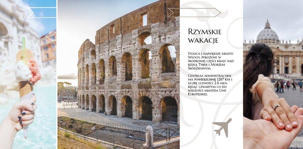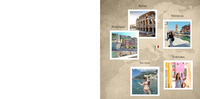 Malownicze plaże, niebotyczne góry, bajkowe zatoki, wspaniała architektura, liczne zabytki i doskonała kuchnia. Oto Włochy w wielkim skrócie. Wybierając się na włoskie wakacje, możemy być pewni, że wiele zobaczymy, wrócimy zadowoleni i przywieziemy ze sobą setki zdjęć. Wybierzmy następnie ulubione kadry i stwórzmy piękną pamiątkę z wakacji we Włoszech. Szablon Wczasy we Włoszech jest utrzymany w klimacie wakacyjnym, z ciekawymi układami i miejscami na opisy odwiedzonych miejsc.