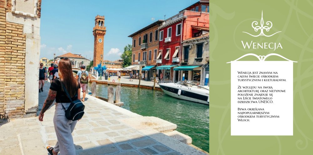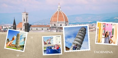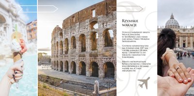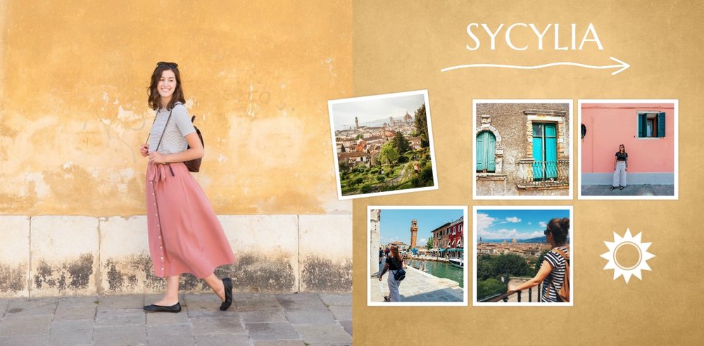 Malownicze plaże, niebotyczne góry, bajkowe zatoki, wspaniała architektura, liczne zabytki i doskonała kuchnia. Oto Włochy w wielkim skrócie. Wybierając się na włoskie wakacje, możemy być pewni, że wiele zobaczymy, wrócimy zadowoleni i przywieziemy ze sobą setki zdjęć. Wybierzmy następnie ulubione kadry i stwórzmy piękną pamiątkę z wakacji we Włoszech. Szablon Wczasy we Włoszech jest utrzymany w klimacie wakacyjnym, z ciekawymi układami i miejscami na opisy odwiedzonych miejsc.