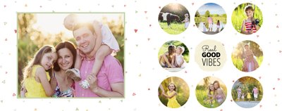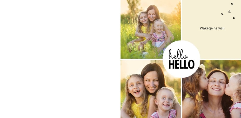 Nie jest Ci obca agroturystyka, miłość do natury i "slow life"? Szablon Wiejska sielanka jest więc dla Ciebie idealną propozycją. Fotoksiążka z tym szablonem będzie pięknie komponować się ze zdjęciami z wypoczynku na wsi. Stonowane kolory zieleni, żółtego oraz pomarańczowego dodają swojskiego charakteru książce. W tych kolorach znajdziemy tu nie tylko tła, ale także ramki i dodatki. Dodaj ulubione zdjęcia i zaprojektuj swoją wakacyjną fotoksiążkę z urlopu na wsi!