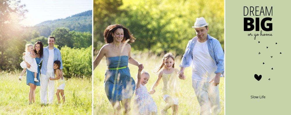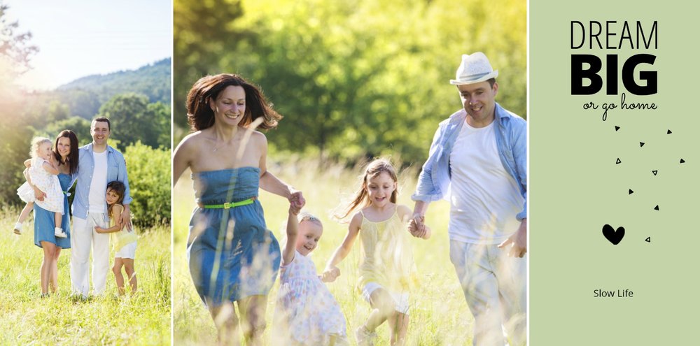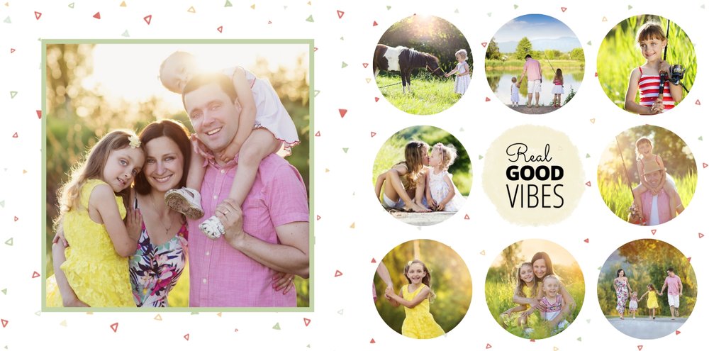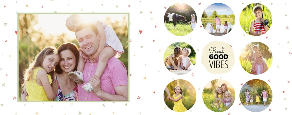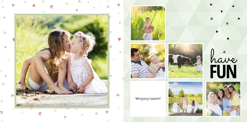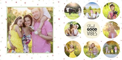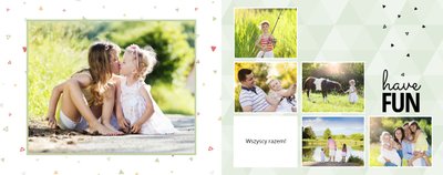 Nie jest Ci obca agroturystyka, miłość do natury i "slow life"? Szablon Wiejska sielanka jest więc dla Ciebie idealną propozycją. Fotoksiążka z tym szablonem będzie pięknie komponować się ze zdjęciami z wypoczynku na wsi. Stonowane kolory zieleni, żółtego oraz pomarańczowego dodają swojskiego charakteru książce. W tych kolorach znajdziemy tu nie tylko tła, ale także ramki i dodatki. Dodaj ulubione zdjęcia i zaprojektuj swoją wakacyjną fotoksiążkę z urlopu na wsi!