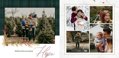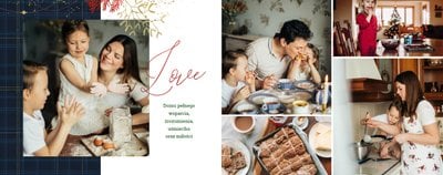 Eleganckie motywy kraty, roślinne ornamenty i złote detale stworzą nowoczesne tło Twoich ulubionych fotografii. Dzięki stonowanej i kolorystyce, fotoksiążka z szablonem "Wigilijna niespodzianka", sprawdzi się zarówno w prezencie dla kobiety, jak i mężczyzny.
