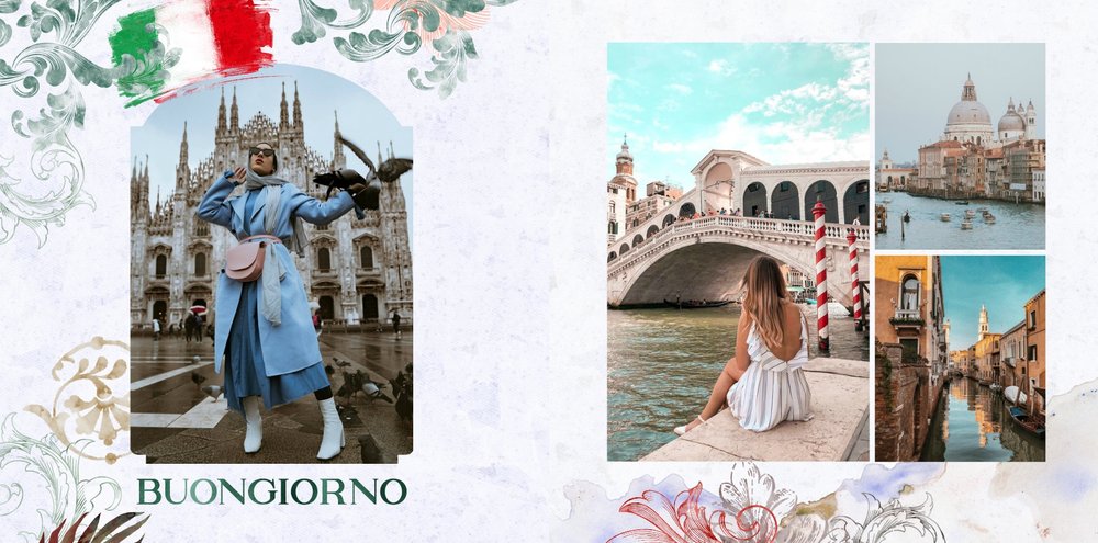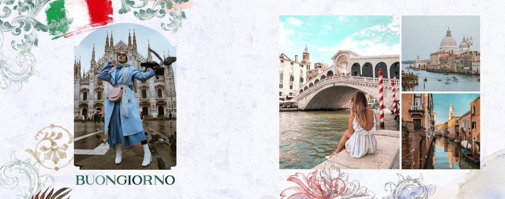 "Włoska pamiątka" to szablon fotoksiążki, który łączy tradycję i nowoczesność, tworząc unikalną przestrzeń do przechowywania Twoich najpiękniejszych chwil.