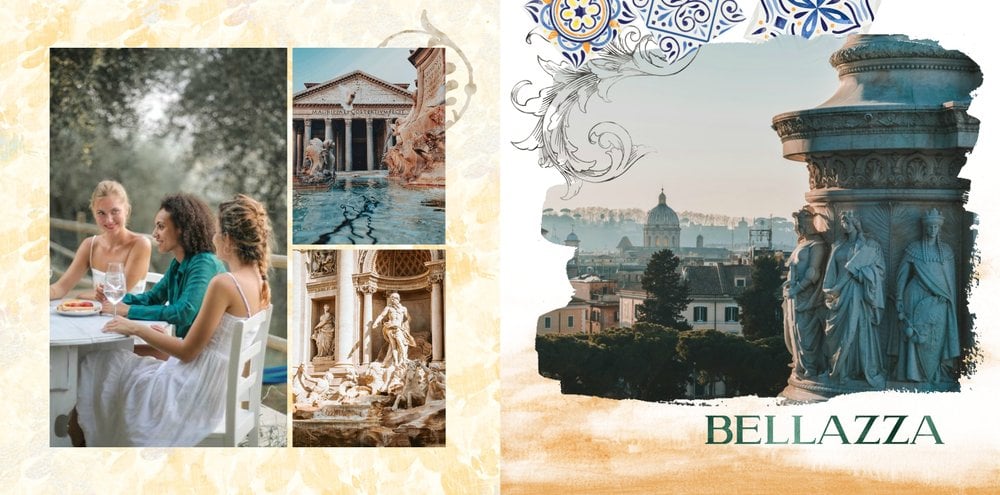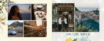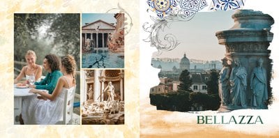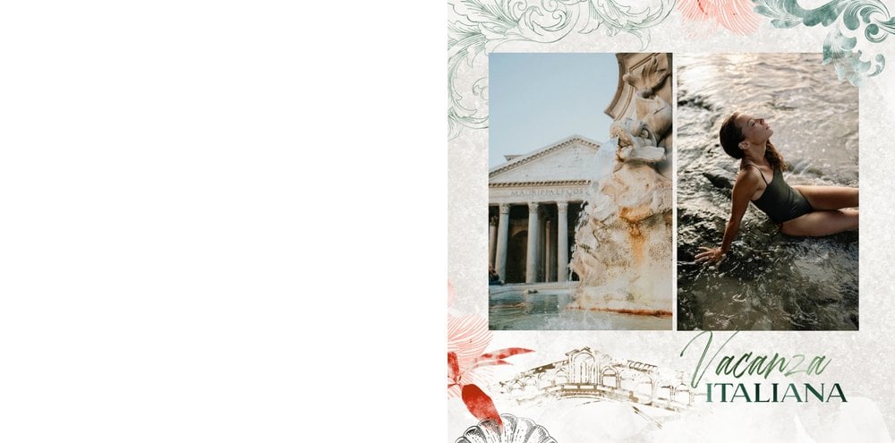 "Włoska pamiątka" to szablon fotoksiążki, który łączy tradycję i nowoczesność, tworząc unikalną przestrzeń do przechowywania Twoich najpiękniejszych chwil.