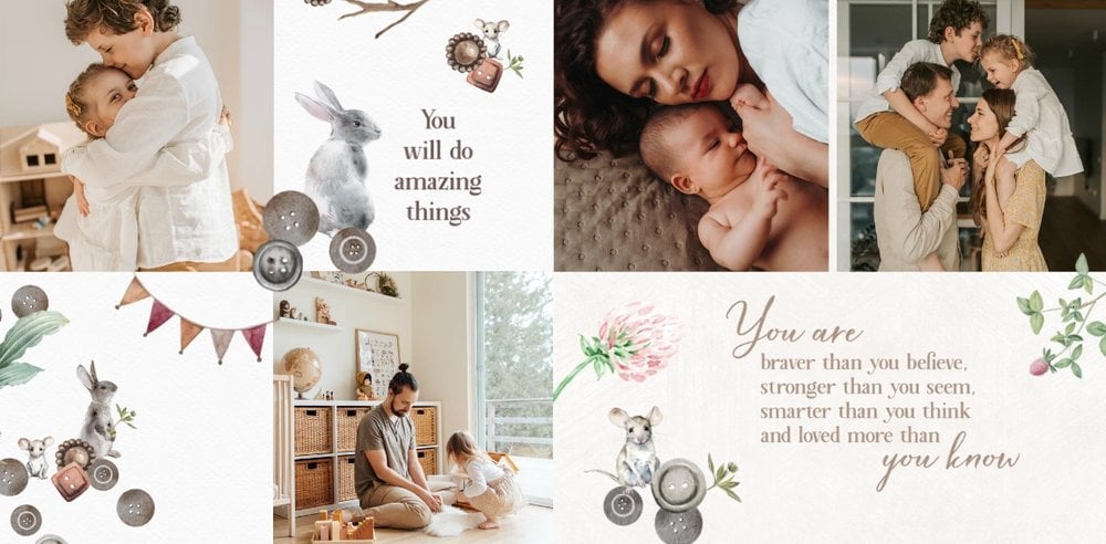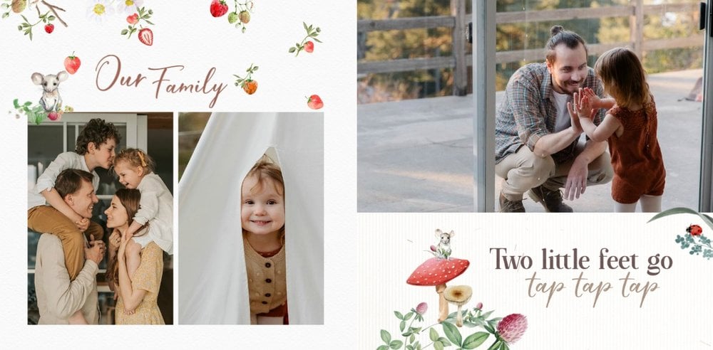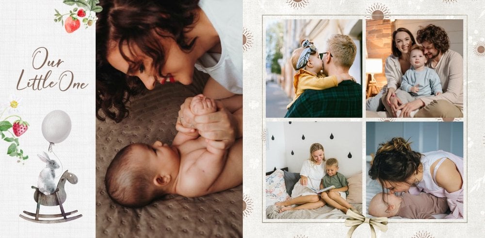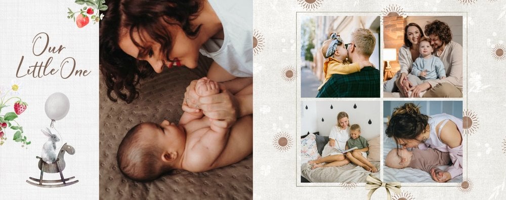 Szablon "Wspomnienia z dzieciństwa" jest idealny do tworzenia fotoksiążek z codziennych zwykłych-niezwykłych momentów malucha. Nie tylko udekoruje on wszystkie słodkie wspomnienia, ale także stworzy niepowtarzalną opowieść, którą będziecie wspólnie odkrywać przez kolejne lata.
