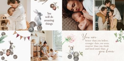 "Wspomnienia z dzieciństwa" to idealne miejsce na uwiecznienie wyjątkowych chwil z pierwszy lat życia Twojego malucha. Szablon jest pełen uroku - każda strona posiada układ komórek zdjęciowych, przyozdobionych delikatnymi, kolorowymi rysunkami.