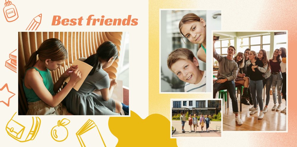Przenieś się w podróż przez szkolne lata swojego dziecka z szablonem fotoksiążki "Wspomnienia z podstawówki".