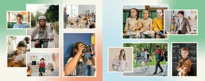 Przenieś się w podróż przez szkolne lata swojego dziecka z szablonem fotoksiążki "Wspomnienia z podstawówki".