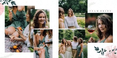 Szablon "Wspomnienie wieczoru panieńskiego" to propozycja stworzona z myślą o kobietach i dla kobiet - pełna kwiatowych akcentów, ozdabiających białe strony szablonu. Ciekawe układy fotografii i napisy nawiązujące do okoliczności stanowią gustowne dopełnienie pamiątki dla Panny Młodej.