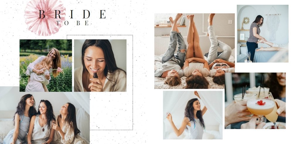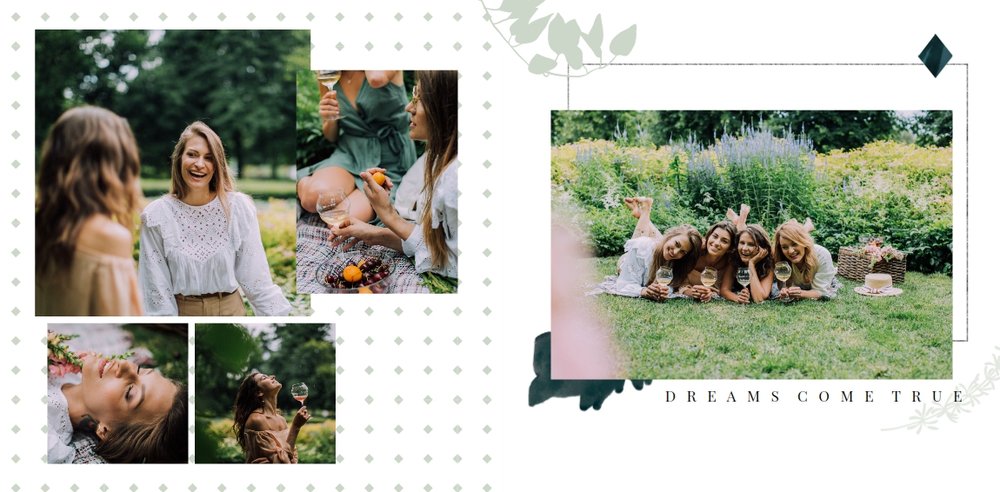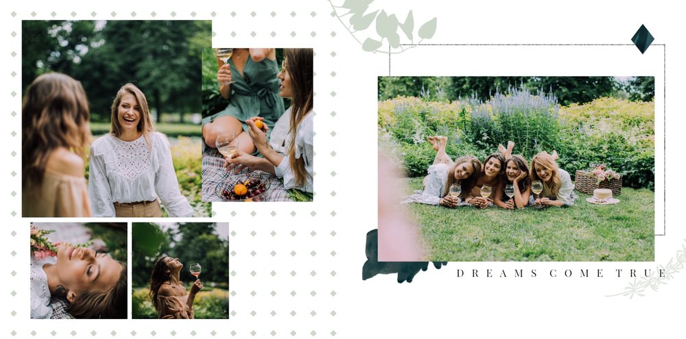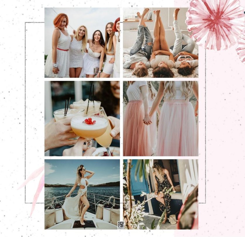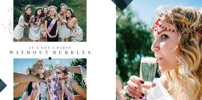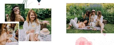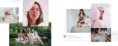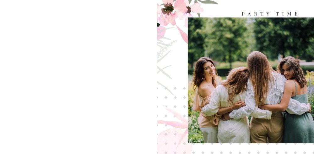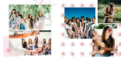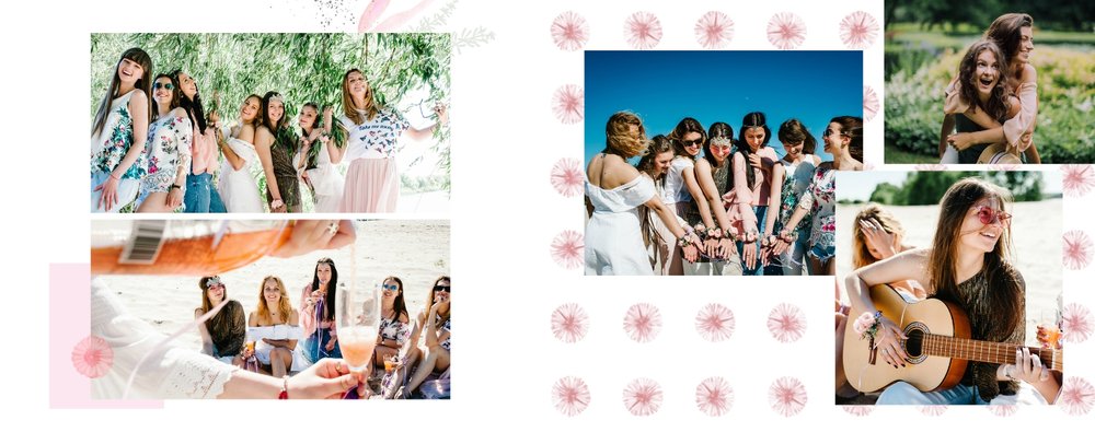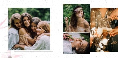 Szablon "Wspomnienie wieczoru panieńskiego" to propozycja stworzona z myślą o kobietach i dla kobiet - pełna kwiatowych akcentów, ozdabiających białe strony szablonu. Ciekawe układy fotografii i napisy nawiązujące do okoliczności stanowią gustowne dopełnienie pamiątki dla Panny Młodej.