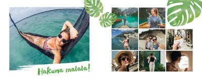 Fotoksiążka zaprojektowana z szablonem "Wypad w tropiki" będzie idealnym podsumowaniem gorących wspomnień.