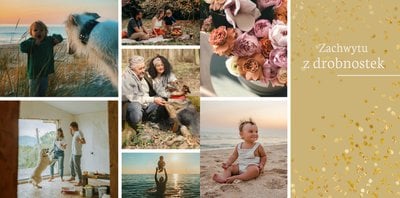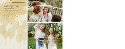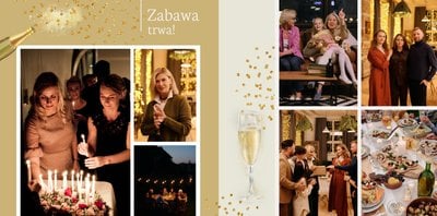 W szablonie dominują odcienie zieleni, beżu i granatu. Niezwykłości dodają złote, subtelne dodatki, które nie dają zapomnieć jakiej okazji pamiątka dotyczy. Kwiatowe wzory zdobią bezcenne fotografie i dodają kobiecości projektowi. Każda strona fotoksiążki "Z okazji 60 urodzin" posiada miejsca na cudowne chwile z życia solenizantki - te spędzone z rodziną czy przyjaciółmi. Możesz skorzystać z propozycji gotowego szablonu, zyskując w kilka chwil oryginalny prezent lub każdą stronę dostosować do własnych potrzeb - zmieniając teksty, układ elementów, czy wielkość i ilość komórek zdjęciowych.