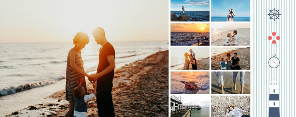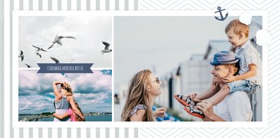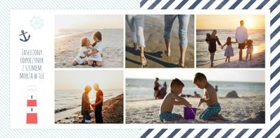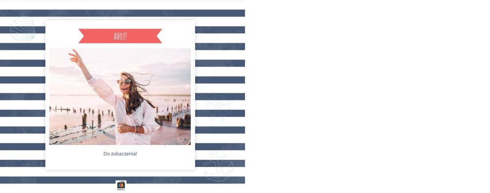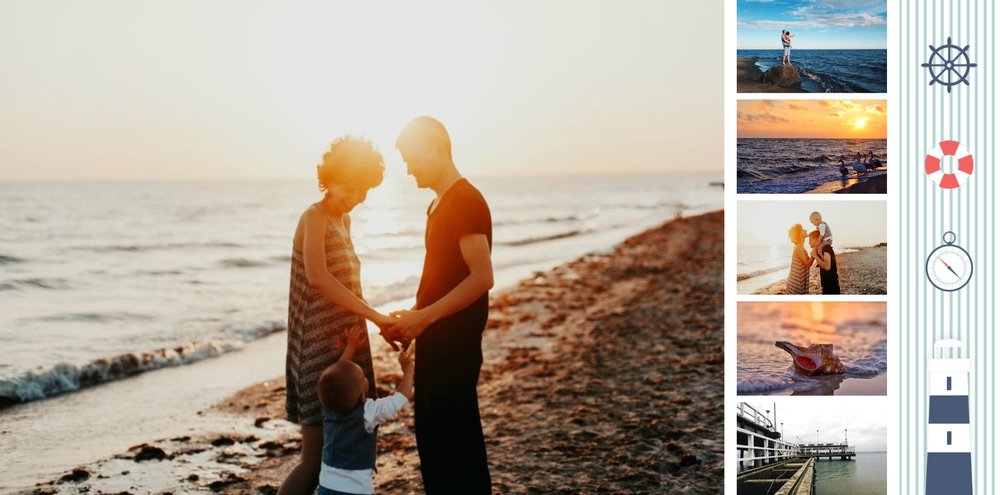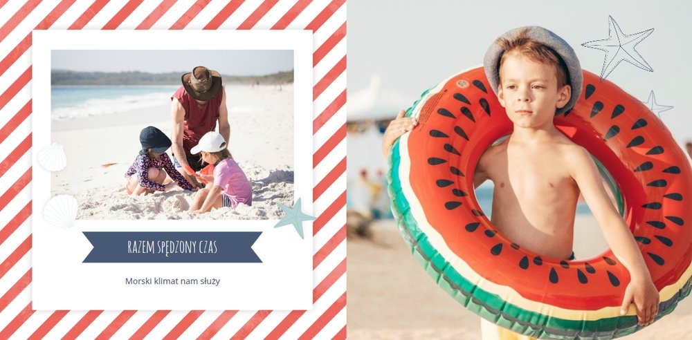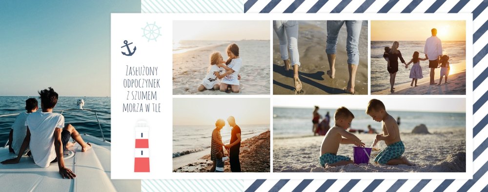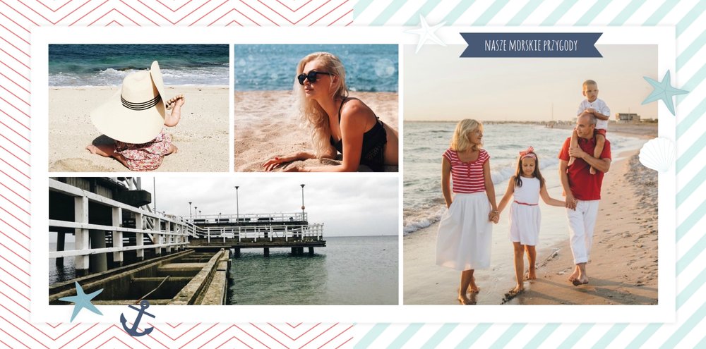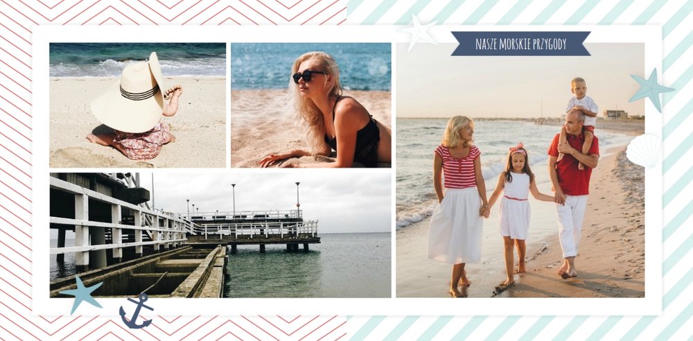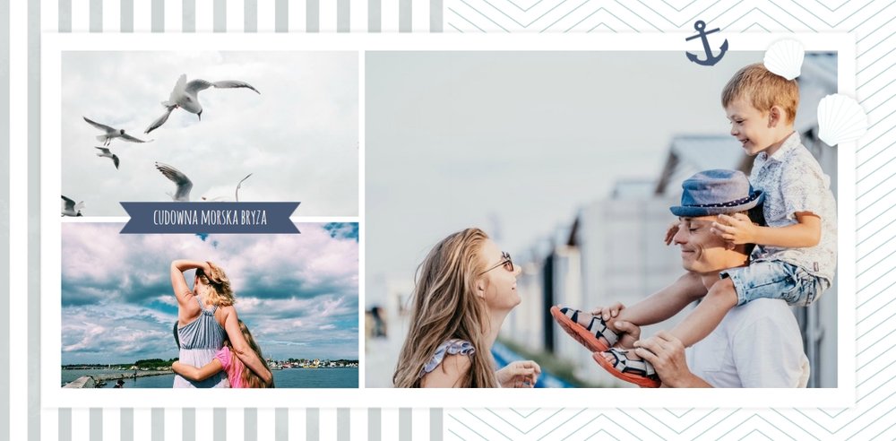 Szablon Zdjęcia nad morzem w marynistycznym klimacie idealnie nada się do uwiecznienia wszystkich nadmorskich wycieczek. Przygotowaliśmy przeróżne pasiaste tła i morskie motywy, aby towarzyszyły Twoim zdjęciom z letniego wypoczynku nad Bałtykiem. Jest to najlepsze rozwiązanie dla wszystkich, którzy chcą utrwalić wakacyjne wspomnienia znad polskiego morza.