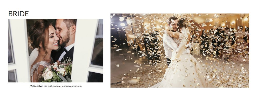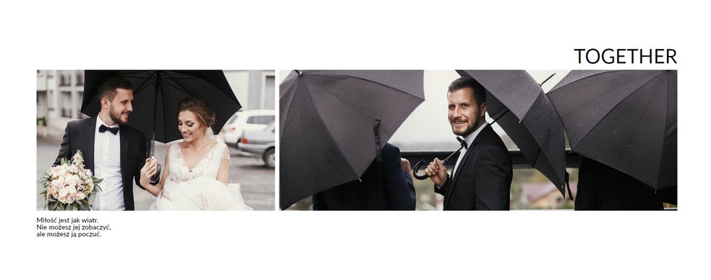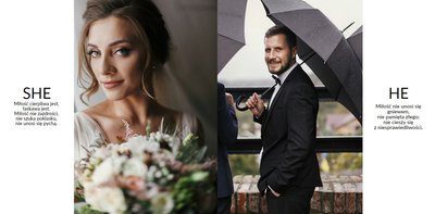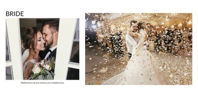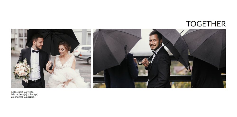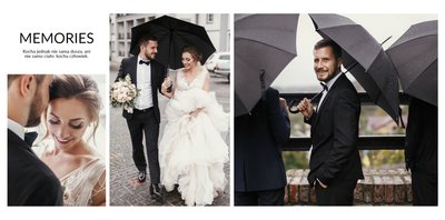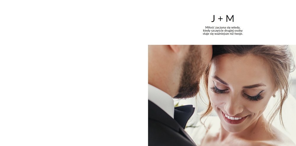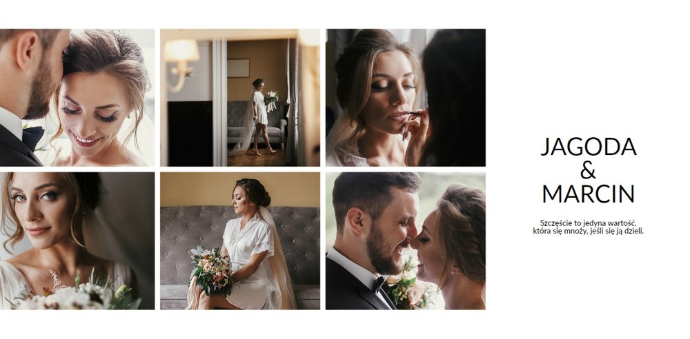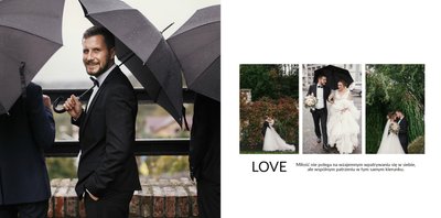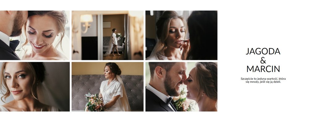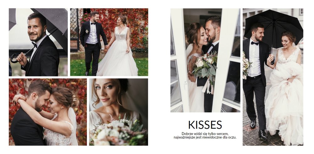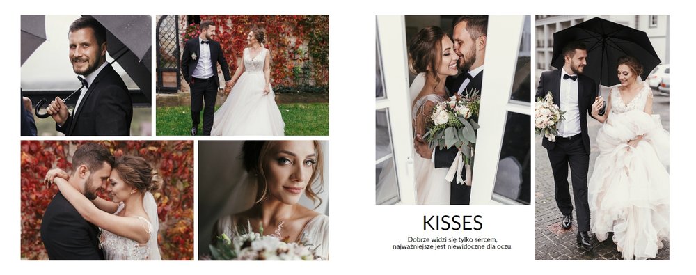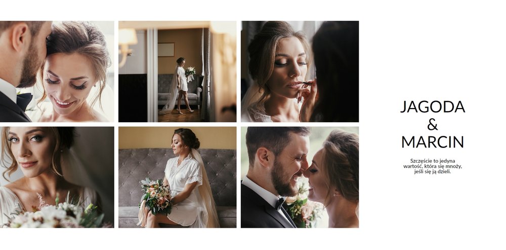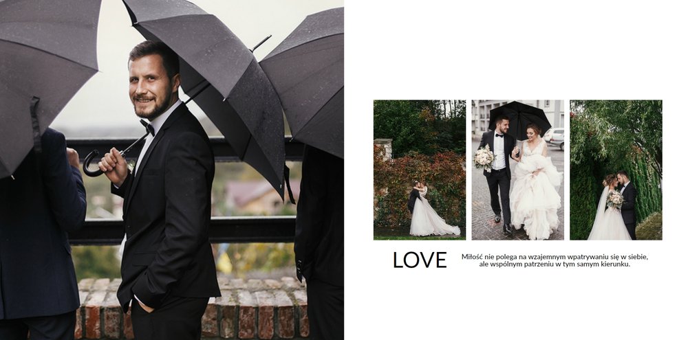 Szablon Zdjęcia ślubne jest idealny dla Młodych Par, które cenią sobie minimalizm i prostotę. Z nim stworzysz fotoksiażkę lub fotoalbum z najpiękniejszymi ślubnymi zdjęciami. Oryginalne układy zdjęć, białe tła i delikatna czcionka, pozwolą cieszyć się najważniejszymi wspomnieniami z Waszego życia. Stwórz niezwykłą pamiątkę i ciesz się ślubną fotoksiążką lub fotoalbumem przez wiele, wiele lat.