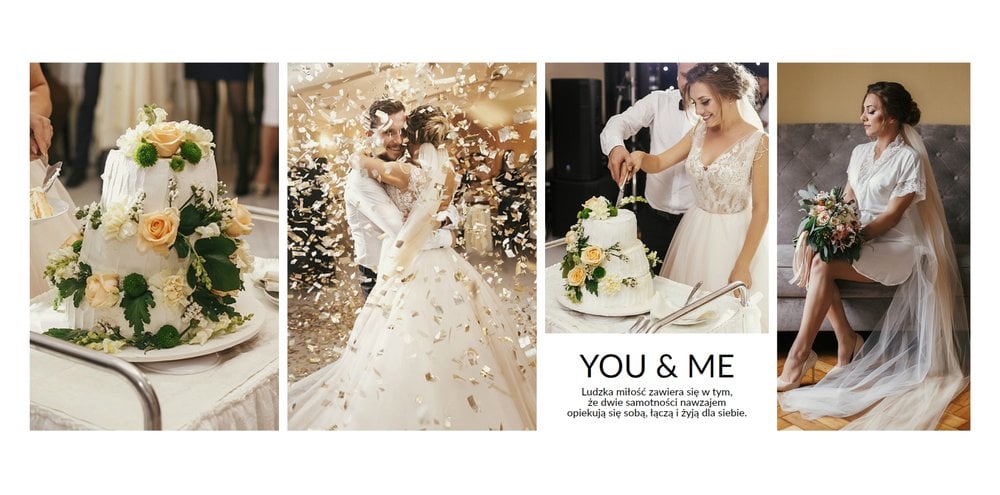 Szablon Zdjęcia ślubne jest idealny dla Młodych Par, które cenią sobie minimalizm i prostotę. Z nim stworzysz fotoksiażkę lub fotoalbum z najpiękniejszymi ślubnymi zdjęciami. Oryginalne układy zdjęć, białe tła i delikatna czcionka, pozwolą cieszyć się najważniejszymi wspomnieniami z Waszego życia. Stwórz niezwykłą pamiątkę i ciesz się ślubną fotoksiążką lub fotoalbumem przez wiele, wiele lat.